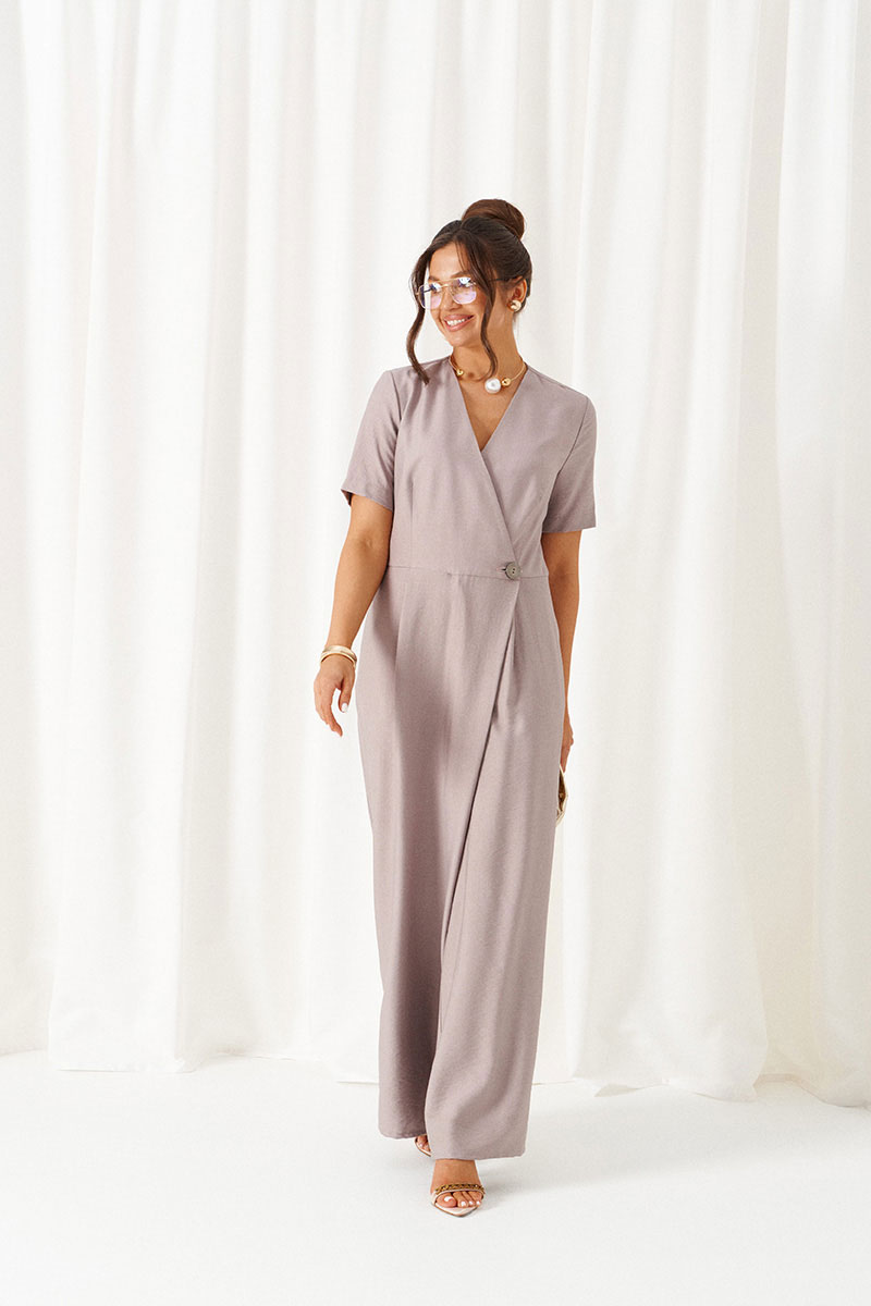 Передняя часть выполнена в полюбившемся многим стиле «на запах», с двумя вытачками на талии лифа и двумя складками на талии брюк.