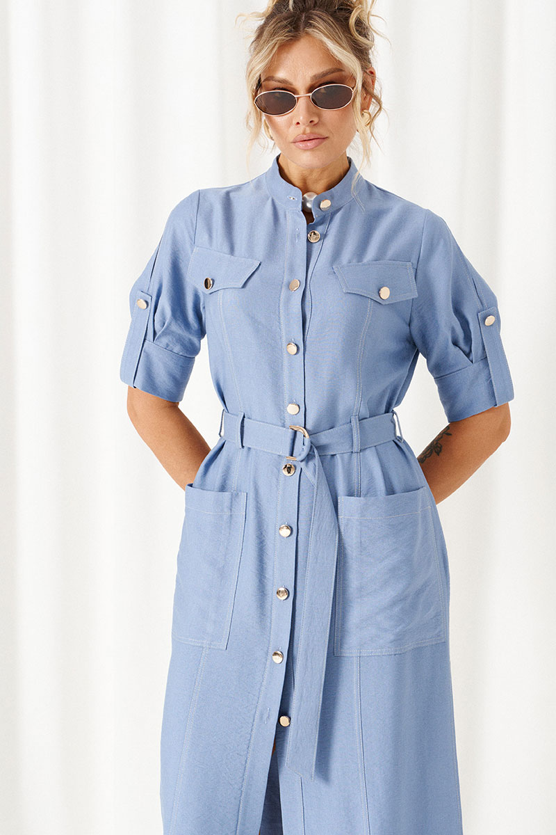 Обстоятельства, когда кажется, что нечего надеть, легко меняет льняное платье. Строгий и свободный крой с акцентными деталями, актуальная цветовая палитра стиля «деним» - всё, что необходимо для комфорта и уверенности!