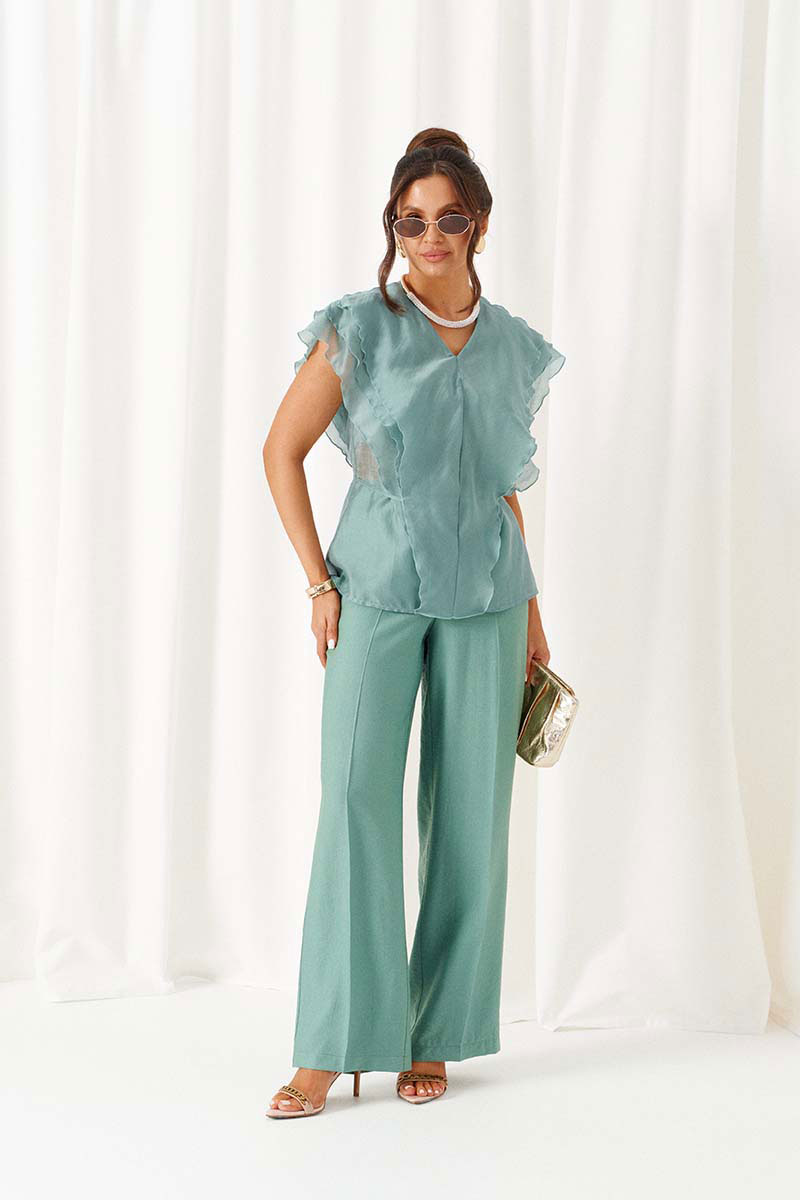 - Состав: блуза: вискоза 87%; нейлон 13%; брюки: лен 80%; вискоза 20%