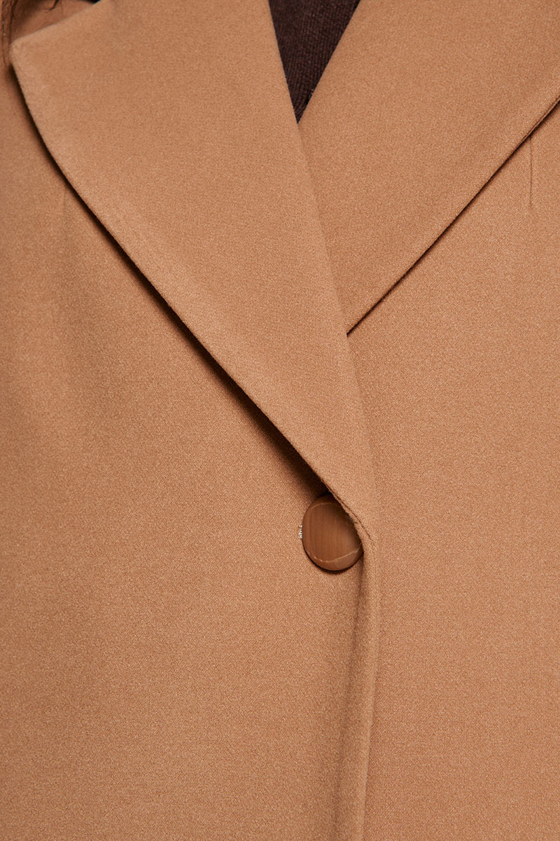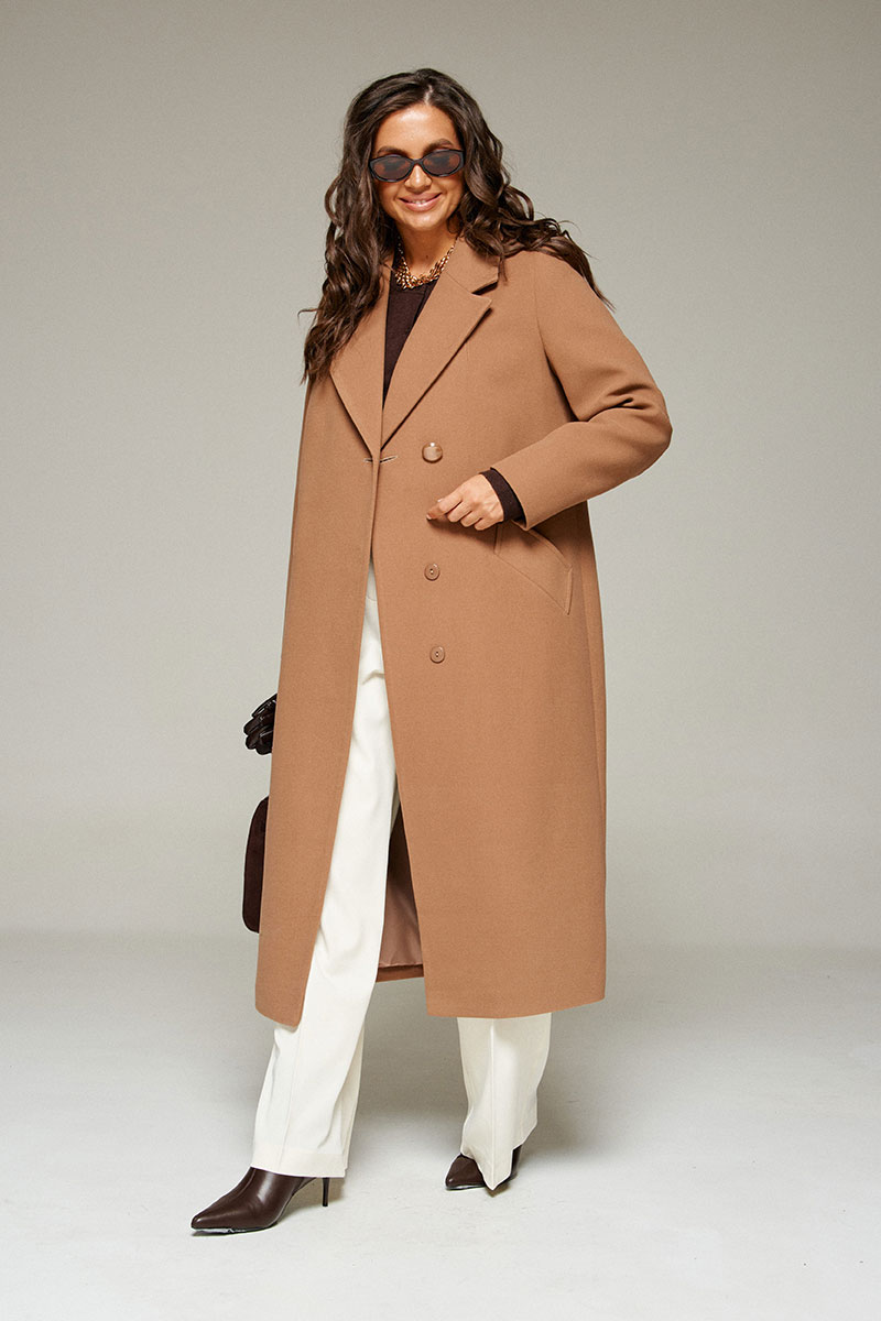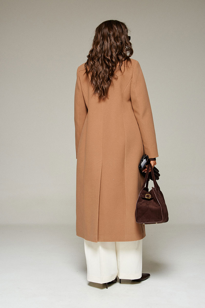 Пальто выполнено из шерстяной ткани, которая обеспечивает теплоизоляцию и защиту от ветра и влаги, подходит для межсезонья и теплой зимы. Двубортное, на подкладке. Изделие рассчитано на температурный режим от +10 до -5 градусов. Модель прямого силуэта, базового кроя; предназначена для повседневного использования.
