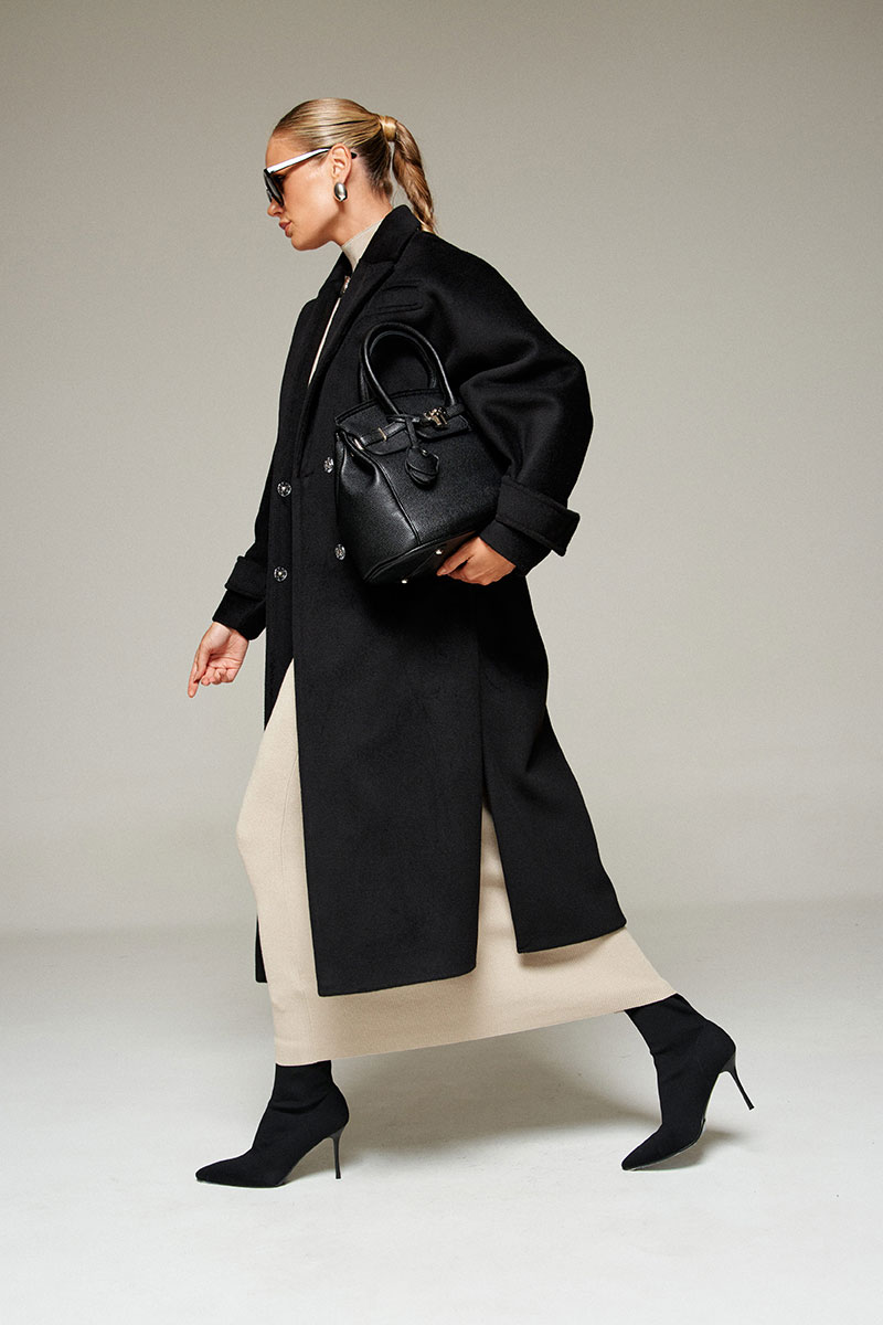 Пальто выполнено из шерстяной ткани, которая обеспечивает теплоизоляцию и защиту от ветра и влаги, подходит для межсезонья и теплой зимы. Двубортное, на подкладке. Изделие рассчитано на температурный режим от +10 до -5 градусов. Модель прямого силуэта актуального покроя «летучая мышь»; предназначена для повседневного использования.