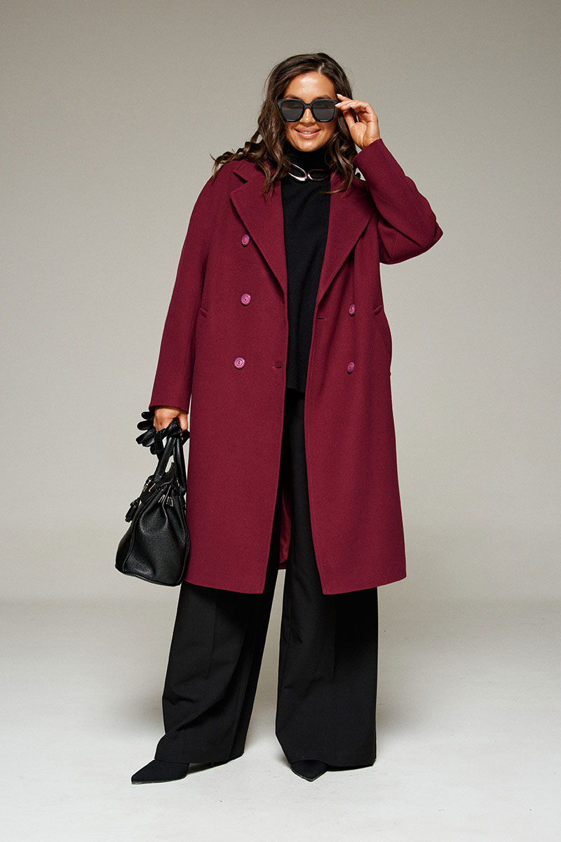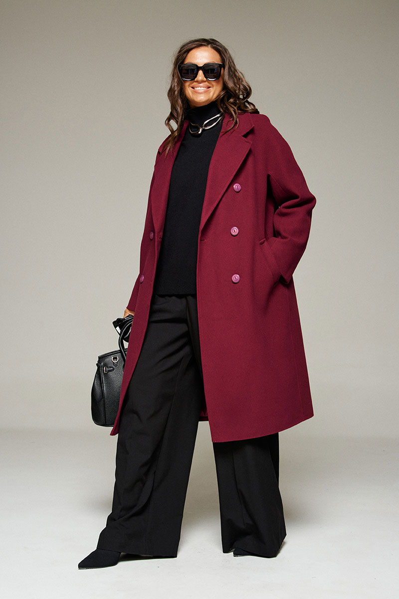 Пальто выполнено из шерстяной ткани, которая обеспечивает теплоизоляцию и защиту от ветра и влаги, подходит для межсезонья и теплой зимы. Двубортное, на подкладке. Изделие рассчитано на температурный режим от +10 до -5 градусов. Модель прямого силуэта, чуть расширенная к низу, покроя «летучая мышь»; предназначена для повседневного использования.
