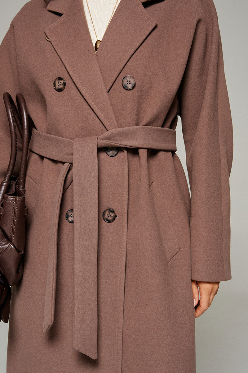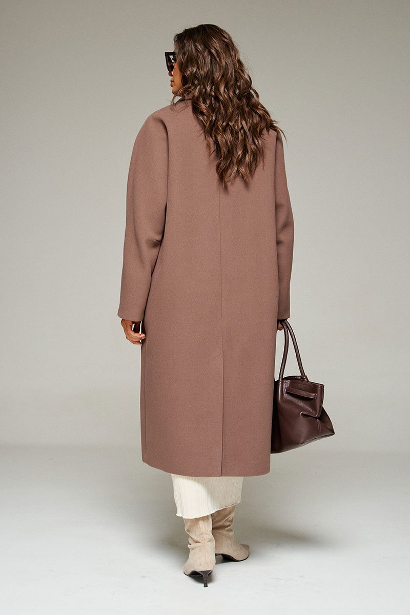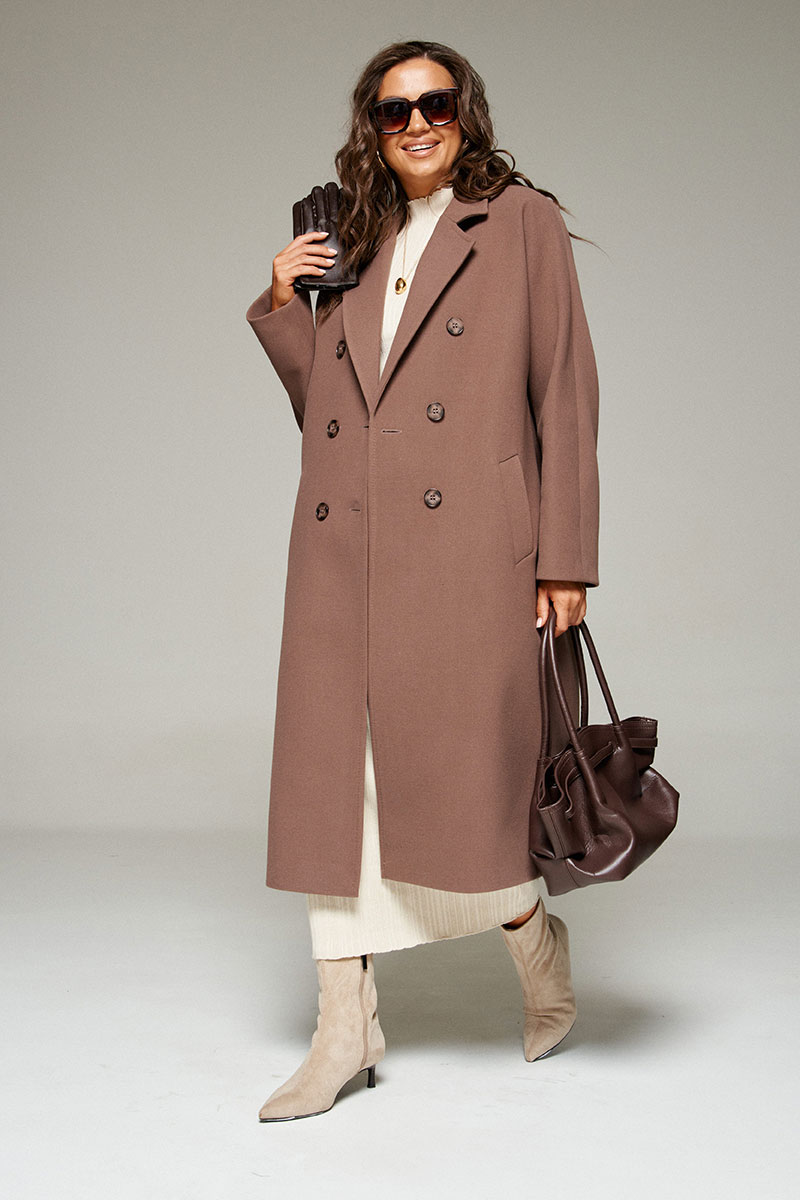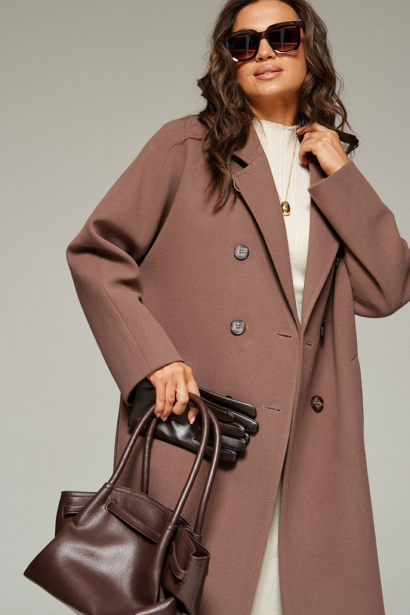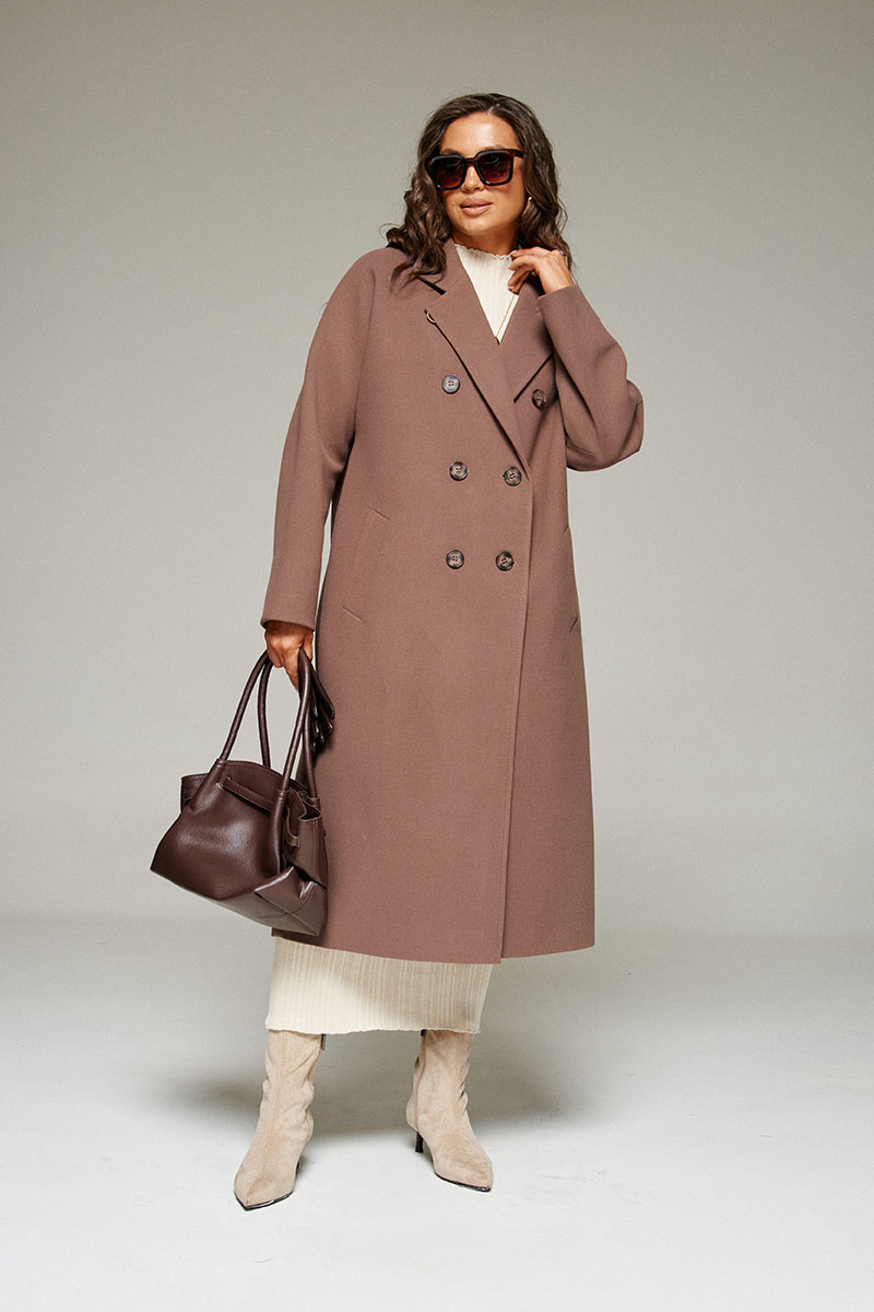 Пальто выполнено из шерстяной ткани, которая обеспечивает теплоизоляцию и защиту от ветра и влаги, подходит для межсезонья и теплой зимы. Двубортное, на подкладке. Изделие рассчитано на температурный режим от +10 до -5 градусов. Модель прямого силуэта, чуть расширенная к низу, покроя «летучая мышь»; предназначена для повседневного использования.