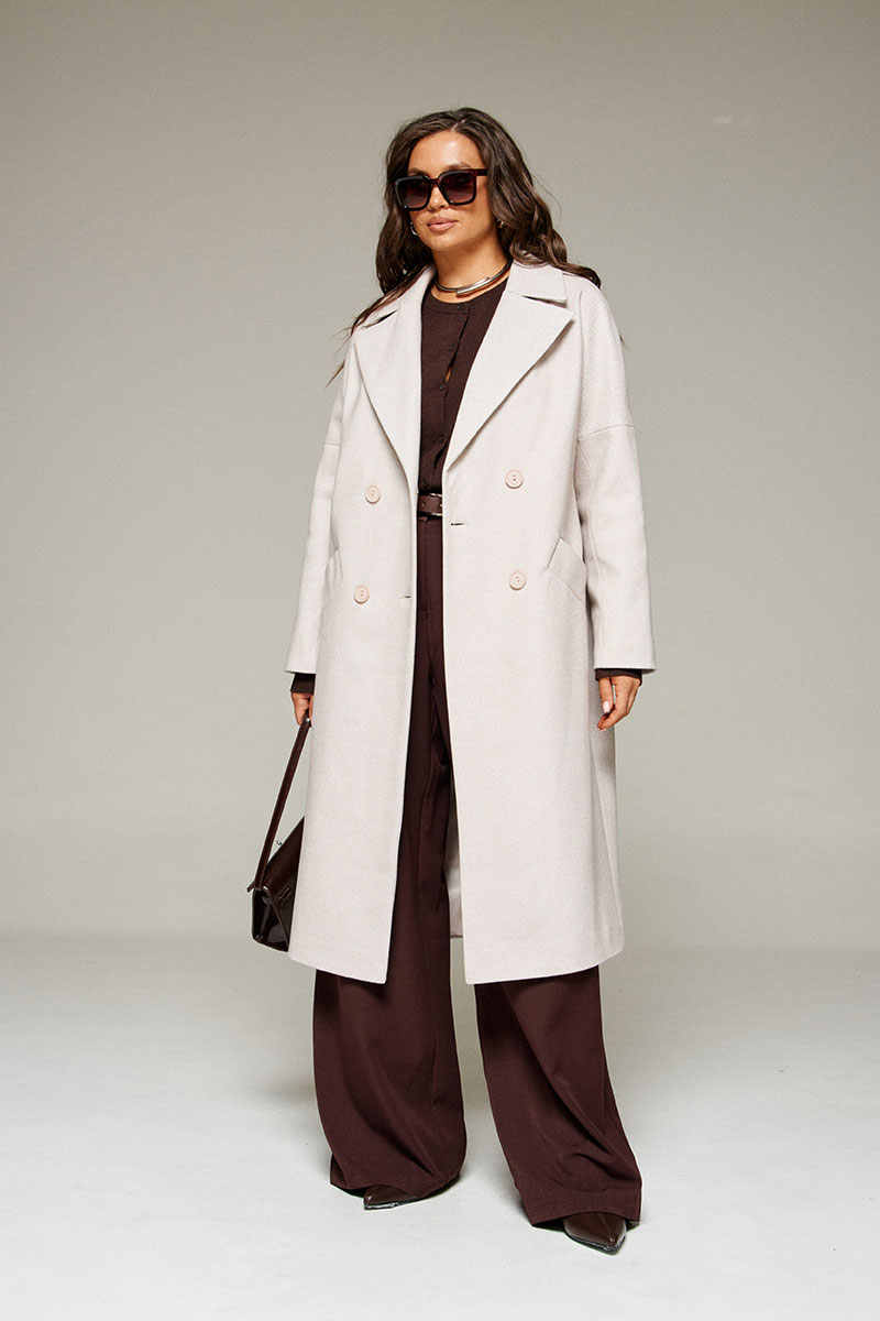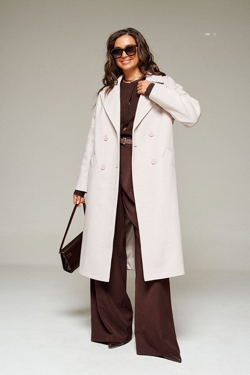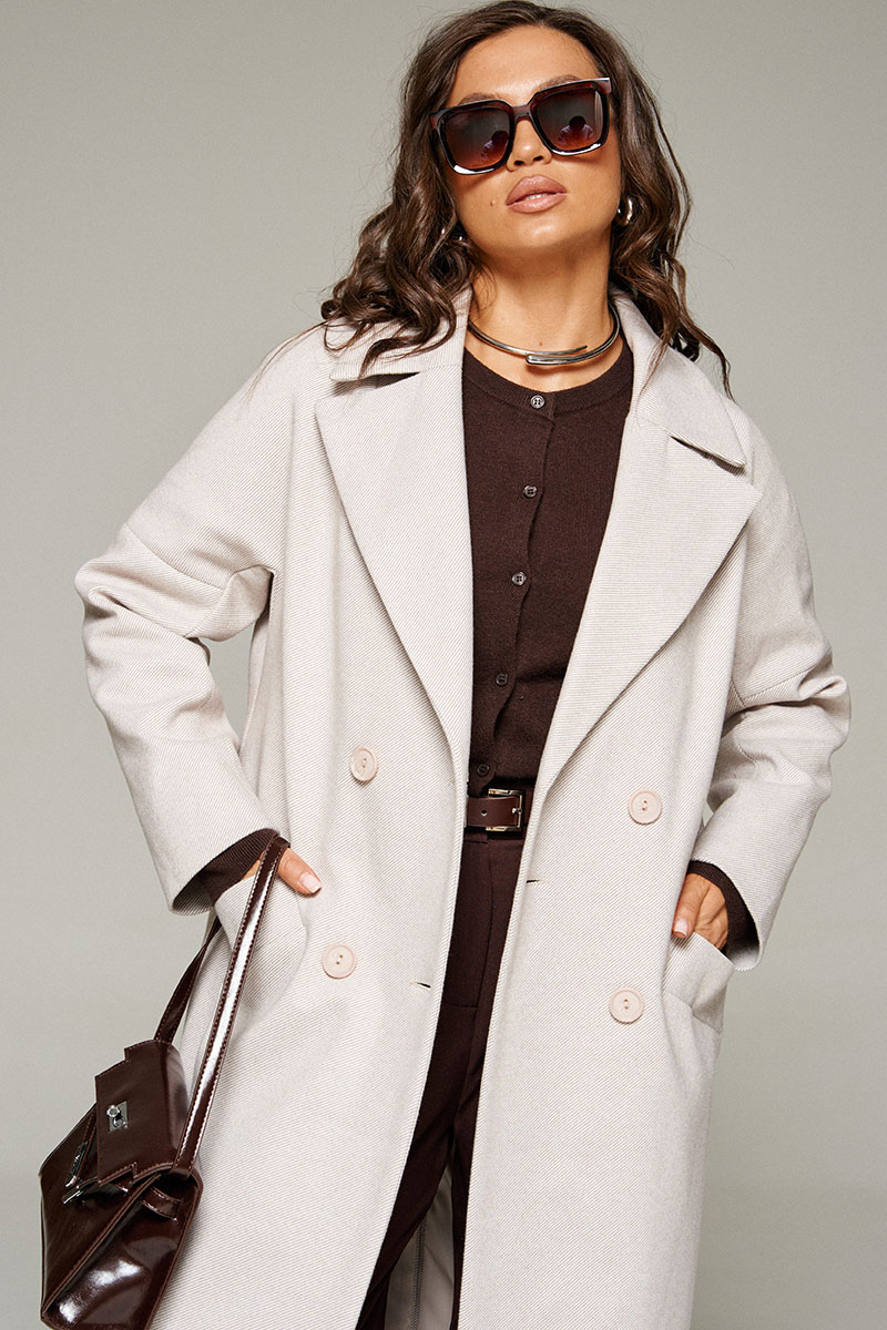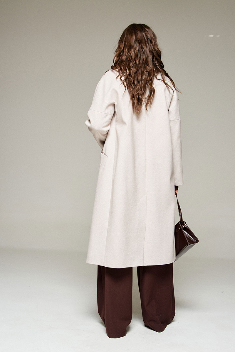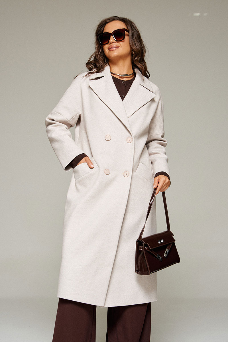 Пальто выполнено из шерстяной ткани, которая обеспечивает теплоизоляцию и защиту от ветра и влаги, подходит для межсезонья и теплой зимы. Двубортное, на подкладке. Изделие рассчитано на температурный режим от +10 до -5 градусов. Модель прямого силуэта, с цельнокроеным покроем рукава; предназначена для повседневного использования.