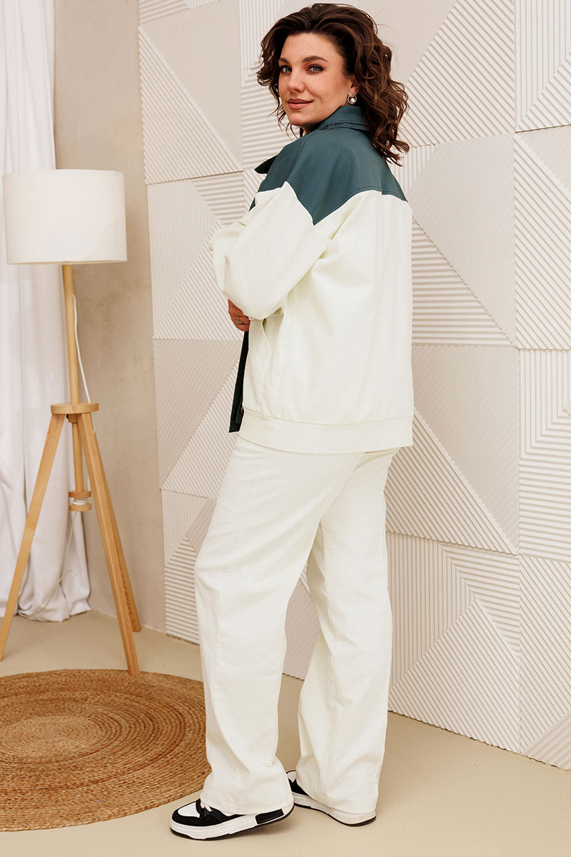 Бомбер свободного кроя. Представляет собой стильное и универсальное сочетание для создания модного образа. Вельвета в рубчик с высоким содержанием хлопка добавляет нотку кэжуал-стиля и придаёт образу свежий и молодёжный вид.