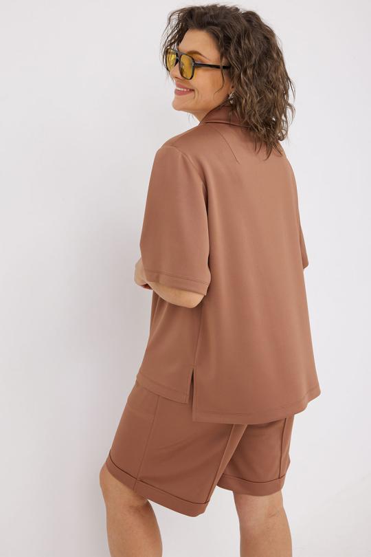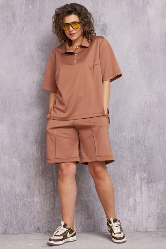 Яркий стильный женский комплект свободного кроя, состоящий из блузы - поло и шорт, выполнен из трикотажной, мягкой, растяжимой ткани с эффектом перелива. Отличный вариант для насыщенного впечатлениями лета. Потрясающе удобный и трендовый костюмчик с укороченными шортами, который должен быть в гардеробе любой модницы!