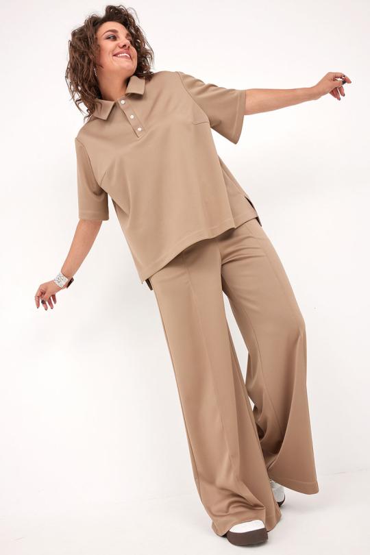 Неповторимый монохромный комплект в стиле спорт-шик выполнен из трикотажной, мягкой, растяжимой ткани с эффектом перелива. Модель выглядит современно и неизбито, она невероятно стройнит силуэт, удлиняет ножки благодаря застроченным стрелкам, создающим вертикаль. Надев комплект, Вы непременно не останетесь без внимания!