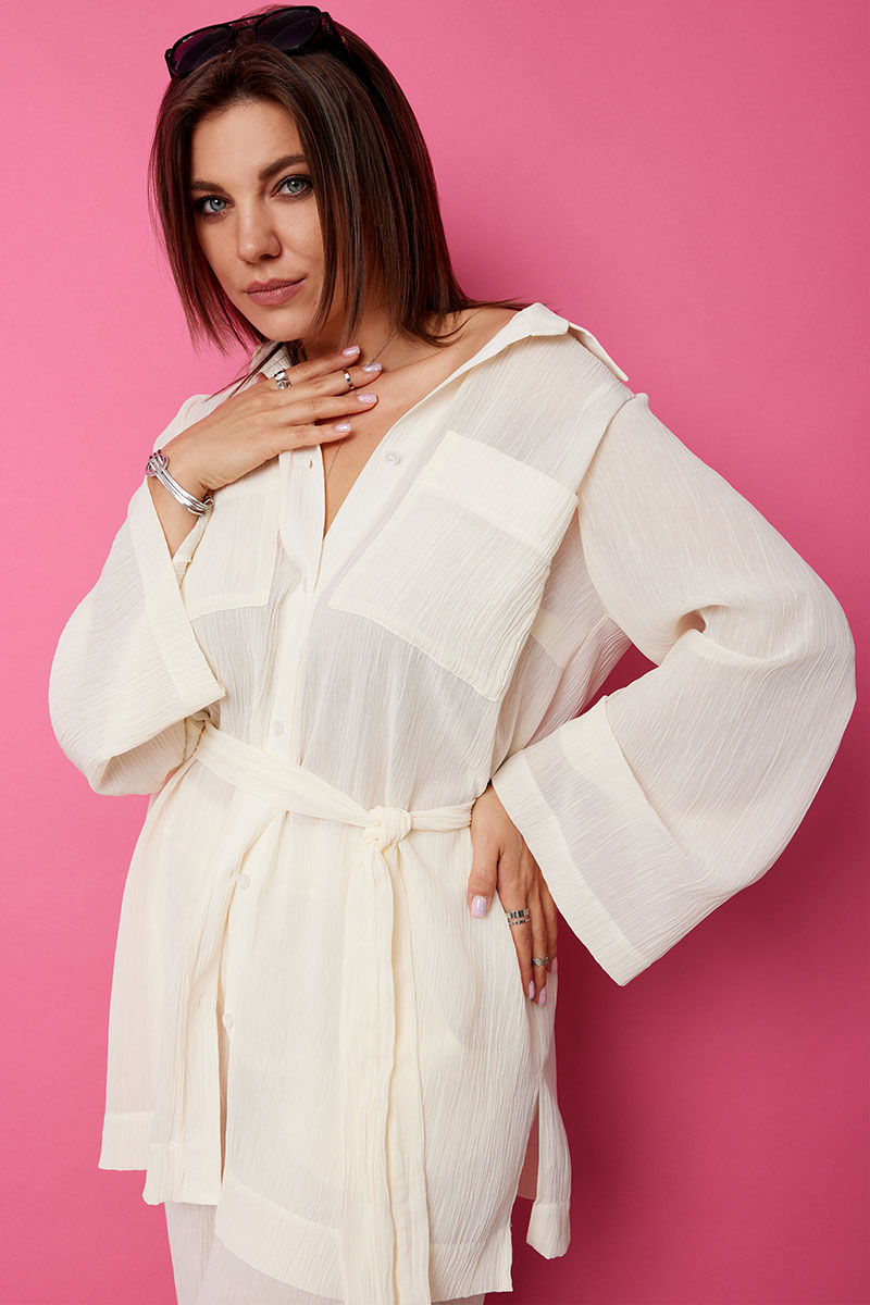 Съёмный пояс из основного материала идёт в комплекте, с его помощью можно подчеркнуть линию талии и быть неотразимой!