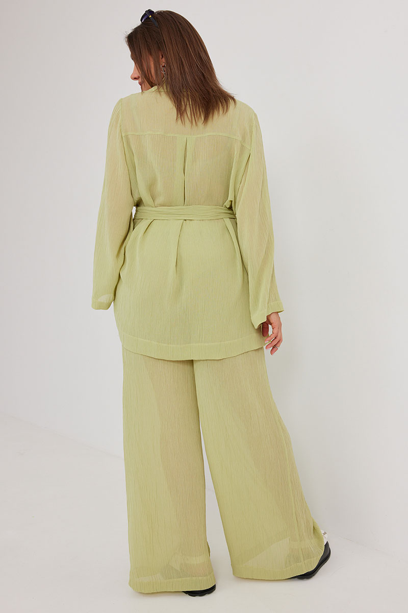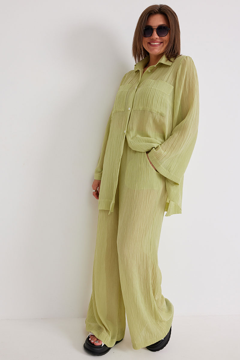 Восхитительный комплект, позволяющий собрать множество комплиментов, состоящий из блузы и брюк палаццо, является классикой современного стиля. Трендовая двойка позволяет вытянуть силуэт, акцентировать внимание на достоинствах фигуры, скрыв её недостатки. Нежный полупрозрачный текстиль обеспечит комфорт в жаркие летние дни. Тканевая фактура жатки не нуждается в дополнительном уходе, элегантный крой комплекта привлечёт к Вам восхищённые взгляды окружающих и в то же время позволит чувствовать себя комфортно.