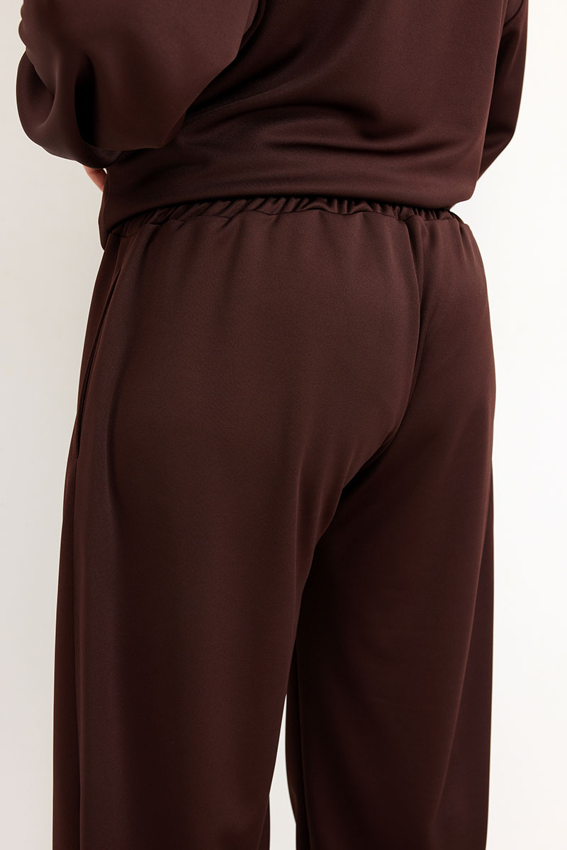 Брюки свободного кроя с притачным поясом на резинке с островком. Это конструктивное решение для идеальной посадки по фигуре.