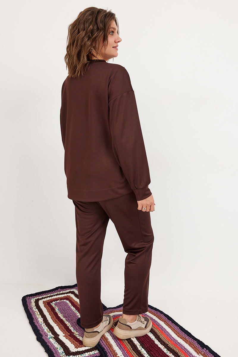 Потрясающий современный комплект из мягкого, эластичного трикотажа позволит обратить на себя внимание и создаст отличное настроение! Свободный силуэт свитшота подарит чувство комфорта. Декоративная отделка бисерной строчкой правильно расставляет акценты, создавая нужные линии, что позволяет визуально подчеркнуть достоинства фигуры. Брючки с застроченной стрелкой идеально садятся по фигуре, невероятно стройнят и удлиняют Ваши ножки!
