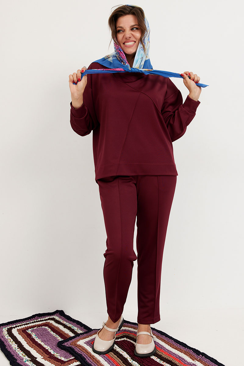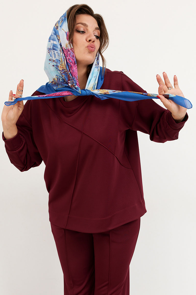 Потрясающий современный комплект из мягкого, эластичного трикотажа позволит обратить на себя внимание и создаст отличное настроение! Свободный силуэт свитшота подарит чувство комфорта. Декоративная отделка бисерной строчкой правильно расставляет акценты, создавая нужные линии, что позволяет визуально подчеркнуть достоинства фигуры. Брючки с застроченной стрелкой идеально садятся по фигуре, невероятно стройнят и удлиняют Ваши ножки!