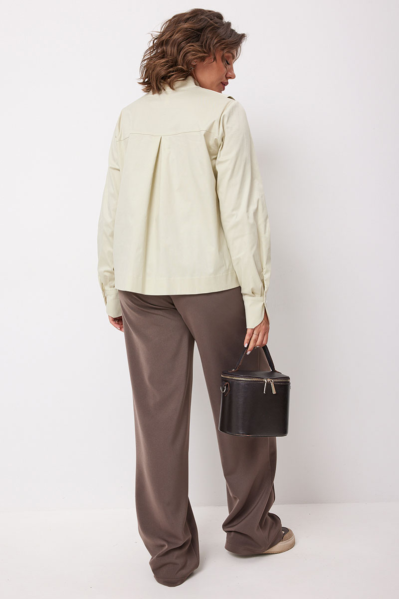 Блуза прямого кроя с воротником стойкой и декоративным деталями в виде отложного воротника , на планке с застёжкой на петли- пуговицы, с нагрудными вытачками. Рукав втачной на