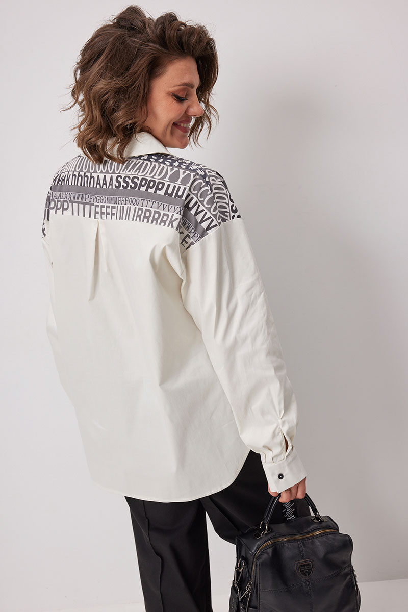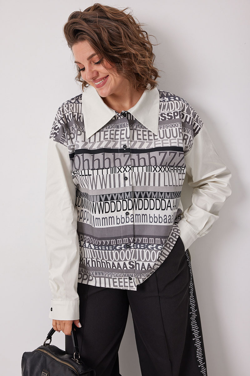 Если Вы ищете что-то особенное и эффектное, что подчеркнёт Вашу индивидуальность, эта блуза именно то, что нужно! Блуза выполнена из сочетания однотонного и принтованного хлопкового