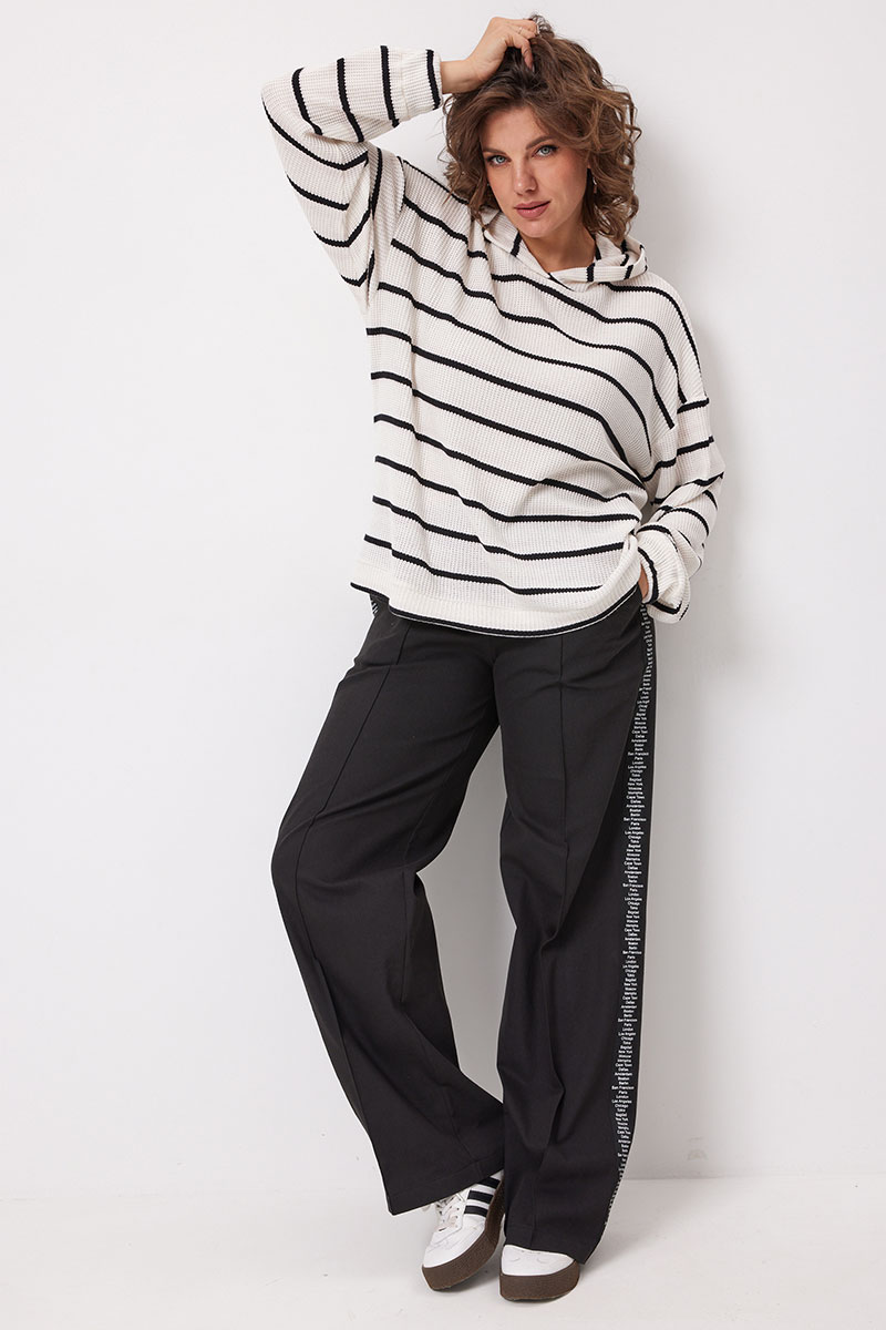 Предлагаем Вам интересную, невероятно комфортную модель, выполненную из мягкого вискозного трикотажа в полоску, которая с лёгкостью впишется в гардероб, позволяя создавать множество