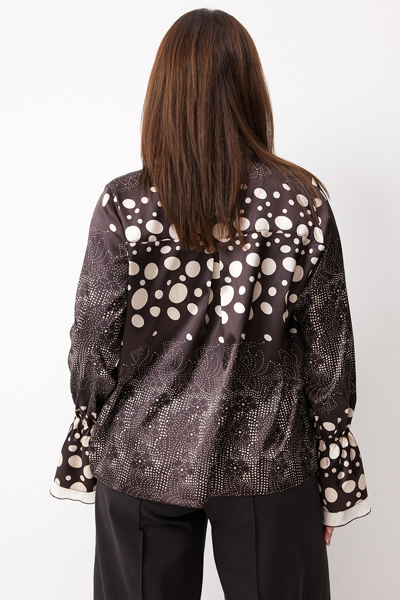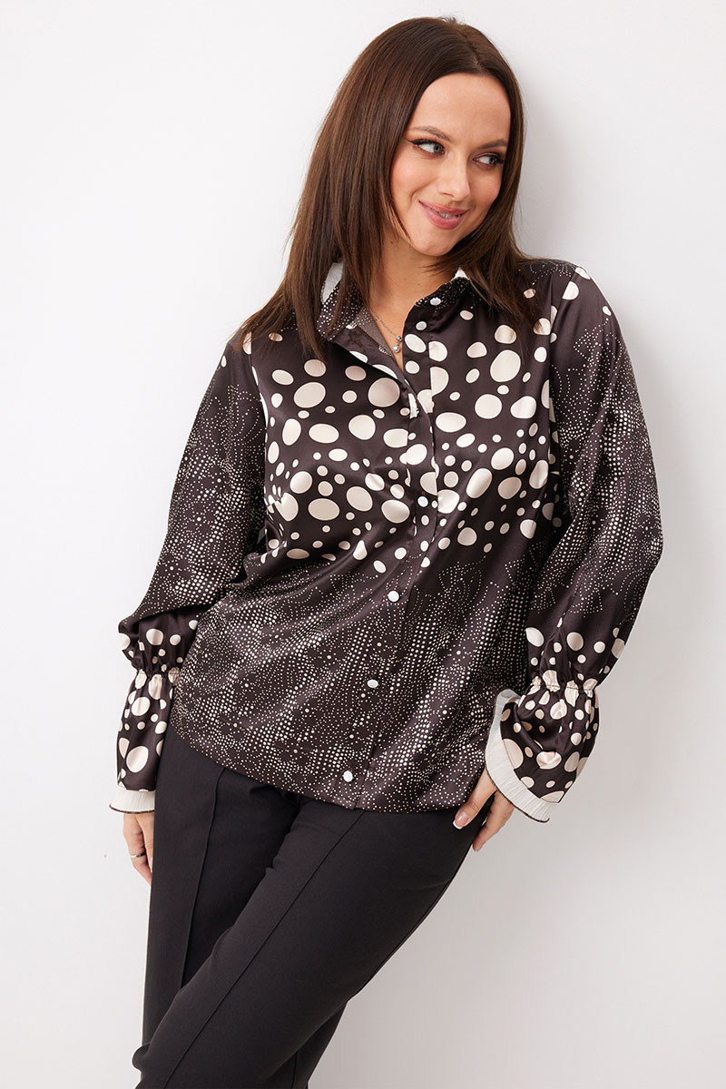 Если Вы мечтаете о блузе, которая подчеркнёт Вашу женственность и добавит образу элегантность, у нас есть готовое решение! Эта блуза из мягкой ткани с переливом в глубоком шоколадном