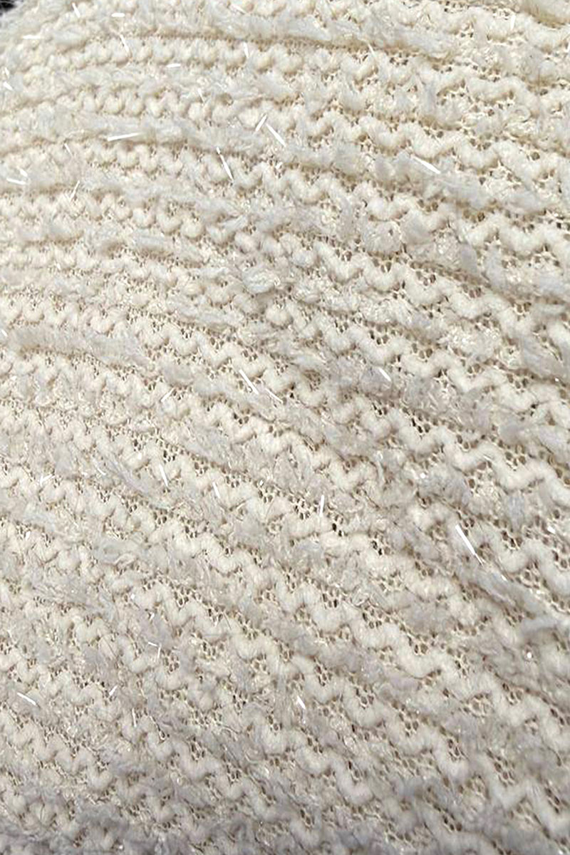 Нежный свитшот свободного кроя из фактурного трикотажа с вплетением мерцающих нитей в благородном оттенке топлёного молока - идеальный выбор для уютных и элегантных образов. Модель идеально впишется в Ваш гардероб, позволяя создавать множество современных сочетаний с жакетами, брюками, юбками и различной обувью.