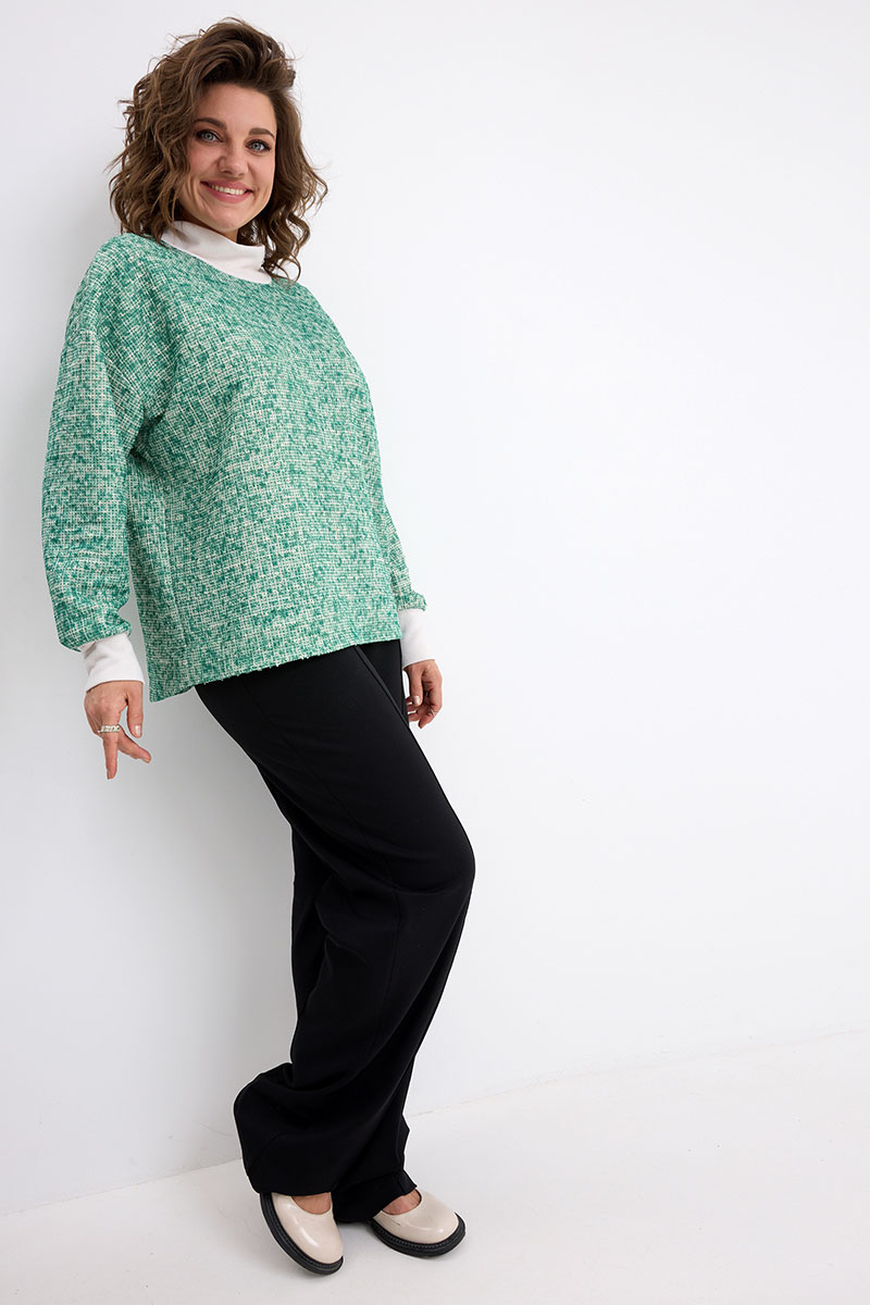 приятный оттенок малахита освежит Ваш образ в прохладные дни. Модель идеально сочетается с джинсами и ботинками для создания расслабленного повседневного образа, с прямой юбкой и