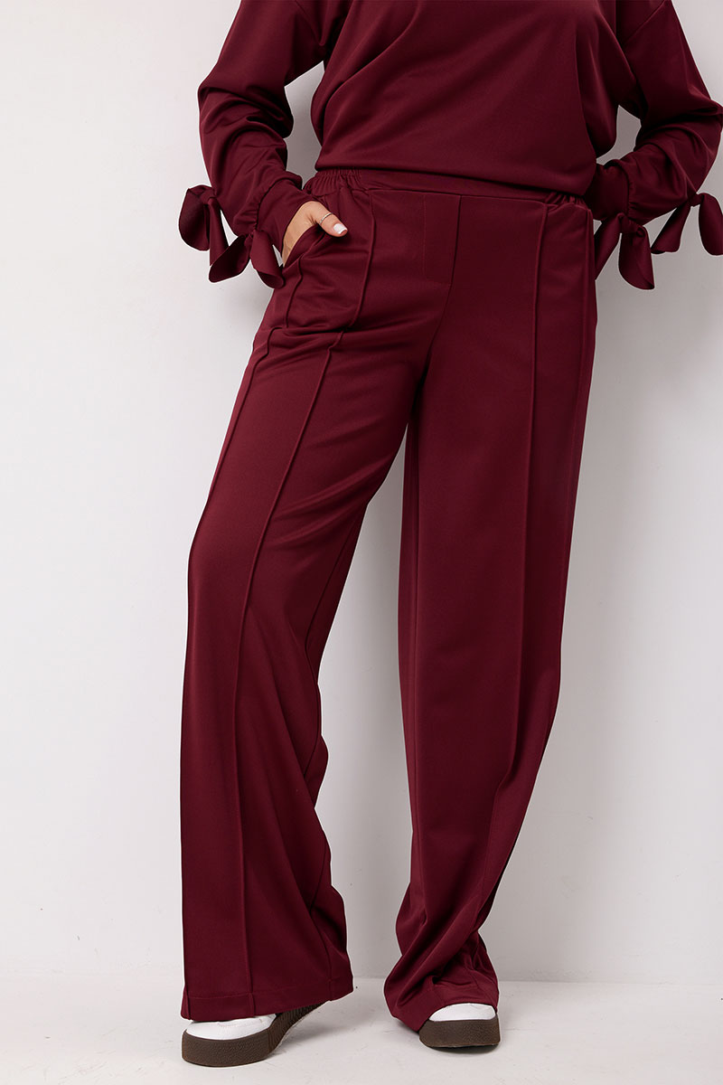 Трикотажные брюки из струящегося тактильно приятного трикотажа просто незаменимы в повседневном гардеробе модницы, которая ценит комфорт и свободу движений. Насыщенные модные цвета