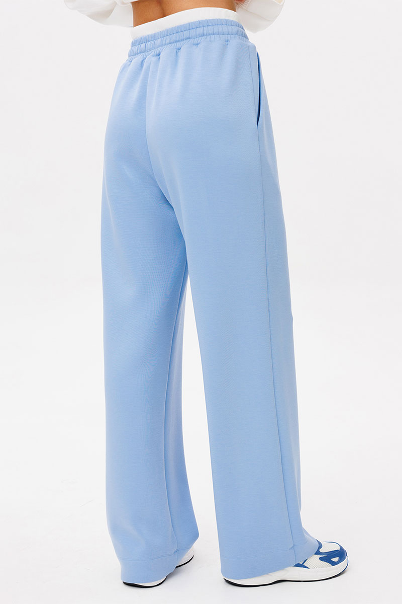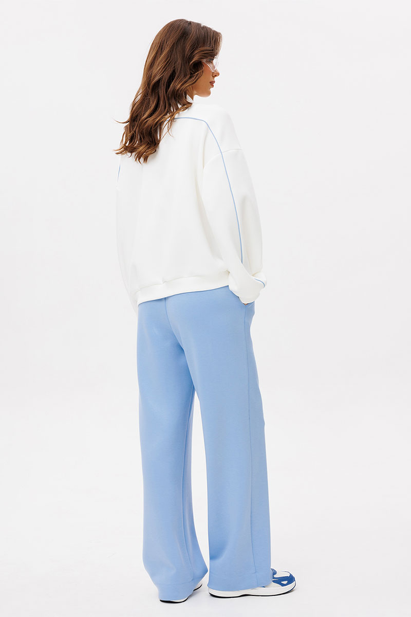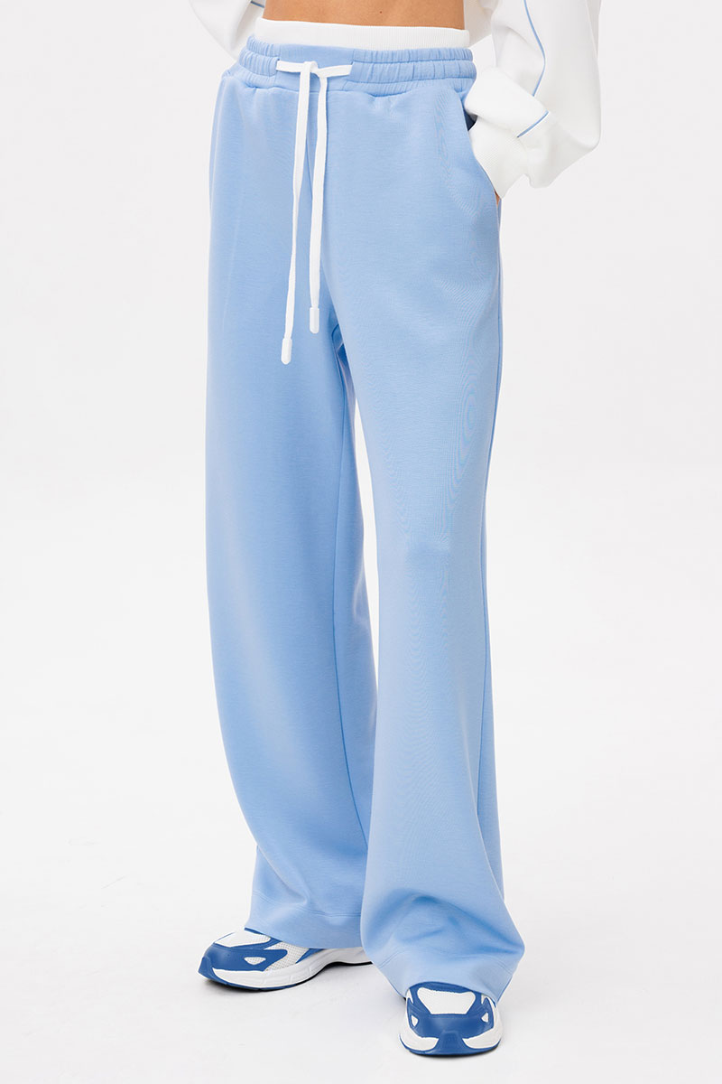 Брюки спортивные, прямого силуэта на притачном, отстроченном поясе на резинке и втянутым в него декоративным шнуром. Над притачным поясом вставлен довяз. По переду карманы в боковых швах с наклонным входом.