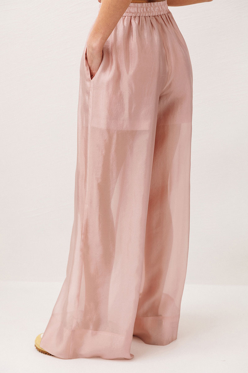 Брюки прямого силуэта на притачном, отстроченном поясе на резинке, с карманами в боковых швах. Верхняя часть брюк на подкладке из основной ткани.