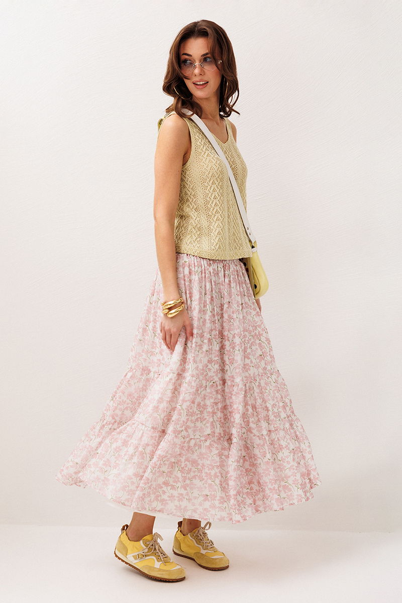 Джемпер трикотажный, без рукавов. По переду и спинке V-образный вырез. По переду нашивка.