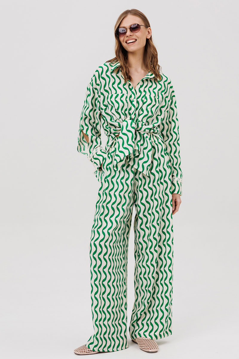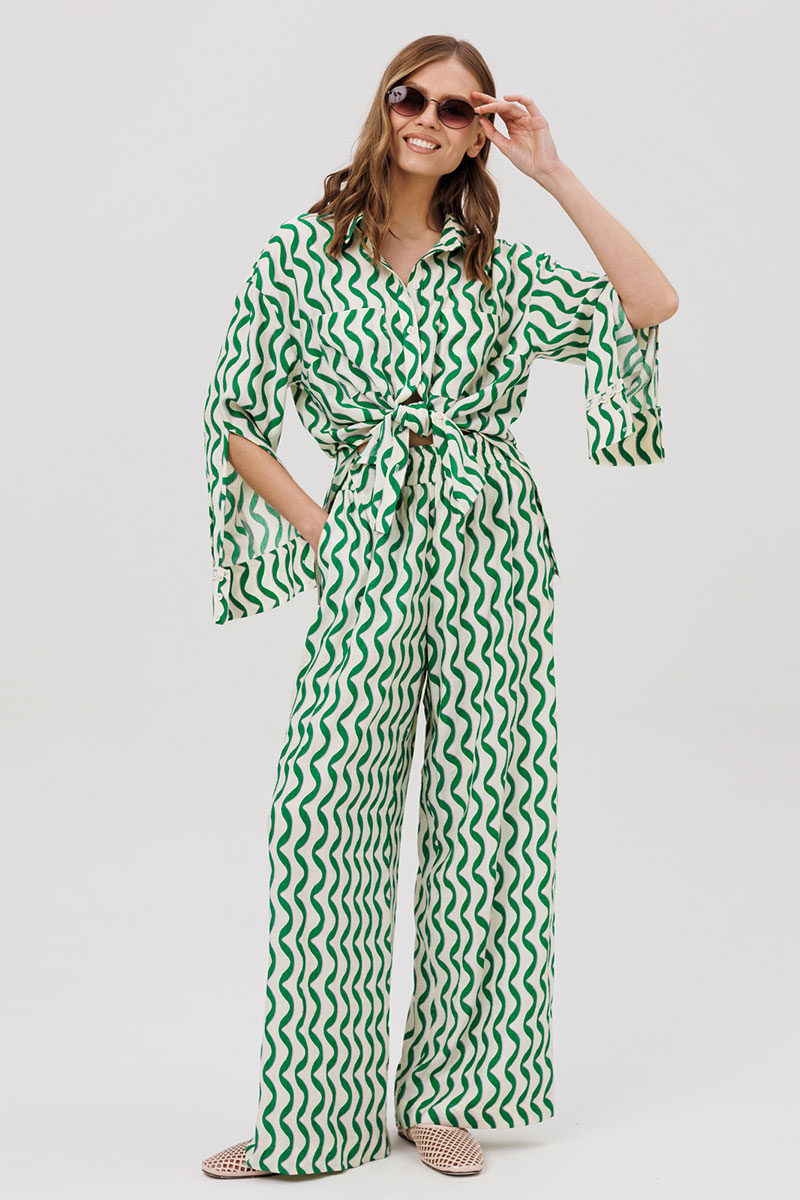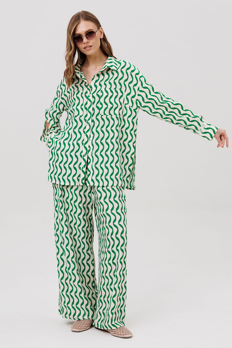 Комплект женский, состоящий из рубашки и брюк.