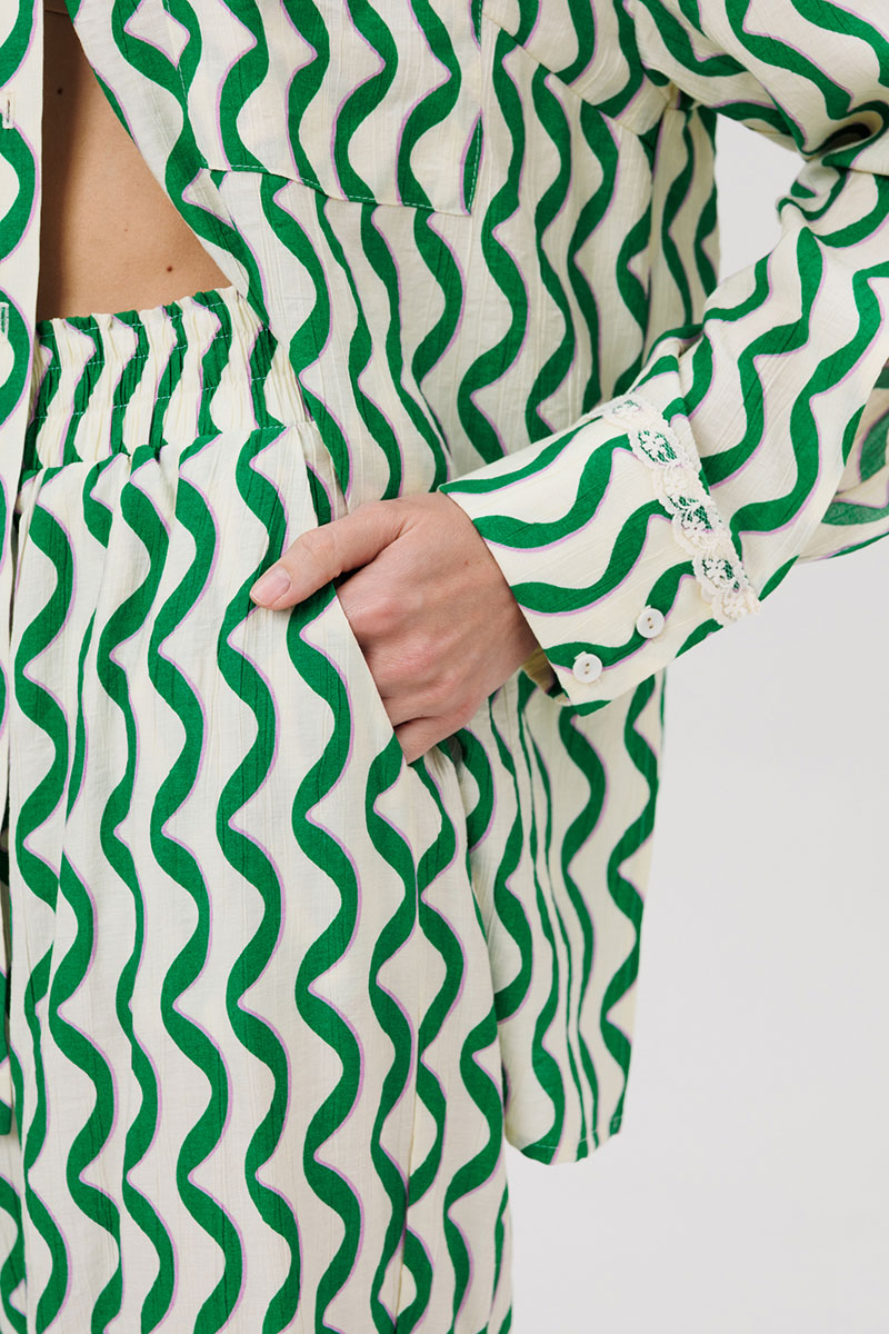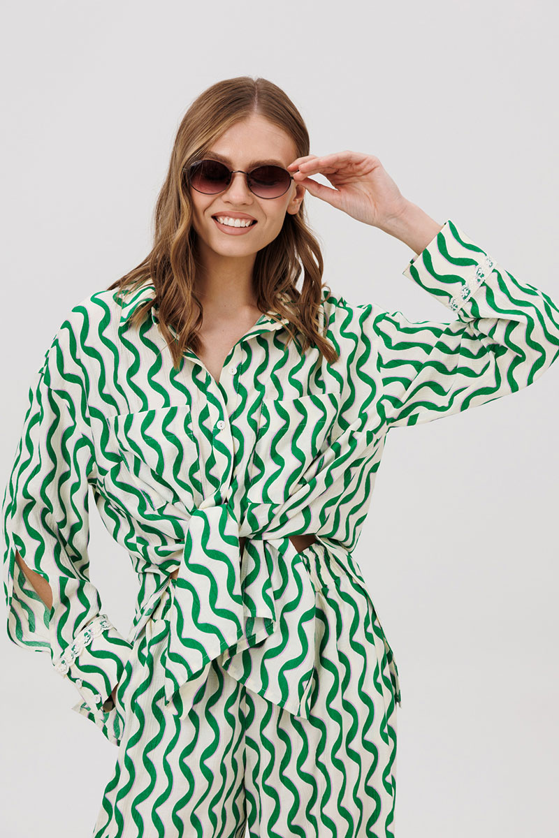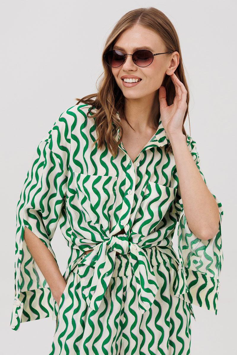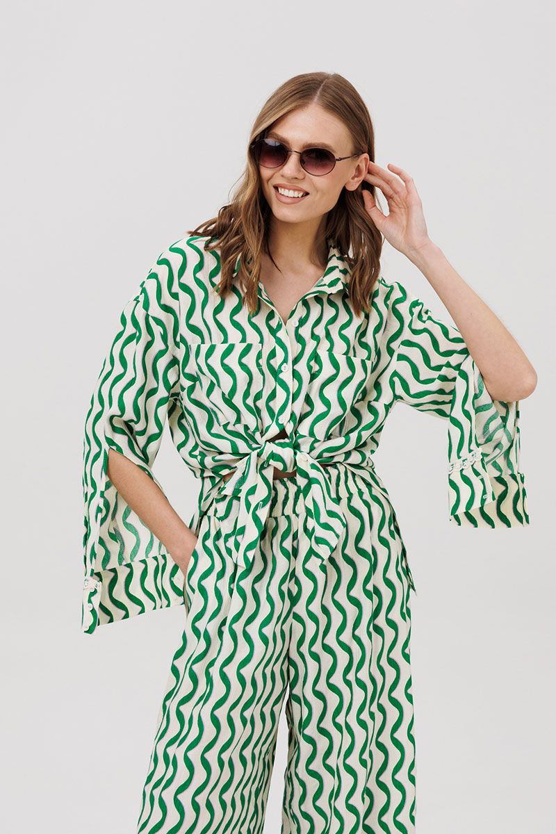 Комплект женский, состоящий из рубашки и брюк.