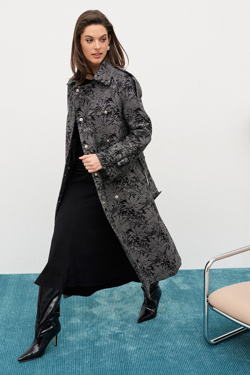 • Застежка двубортная на металлические кнопки • Наклонные карманы с листочками