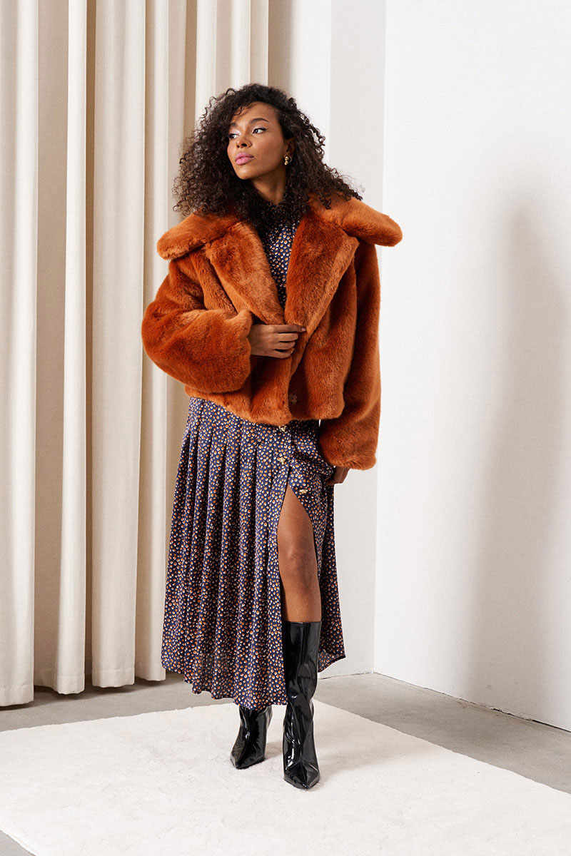 Утепленное полупальто из искусственного итальянского меха. Полупальто прямого силуэта с центральной застежкой на пришивные кнопки. Перед с карманами в боковых швах, воротник отложной. Рукав втачной со сборкой и эластичной тесьмой по низу. Подкладка простегана качественным утеплителем.