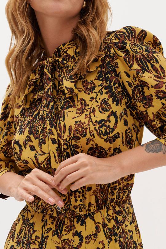• Низ рукава с манжетой и застежкой на петлю и пуговицу • Воротник-стойка с завязками и отложным воротничком со складками