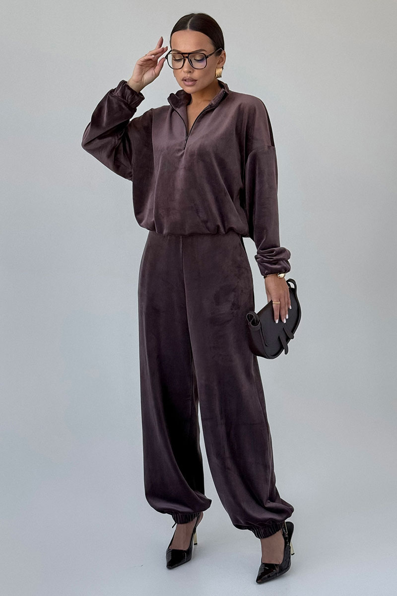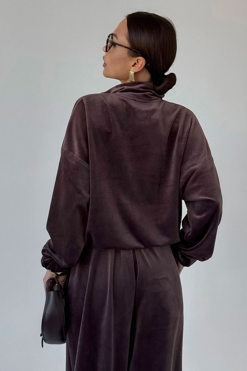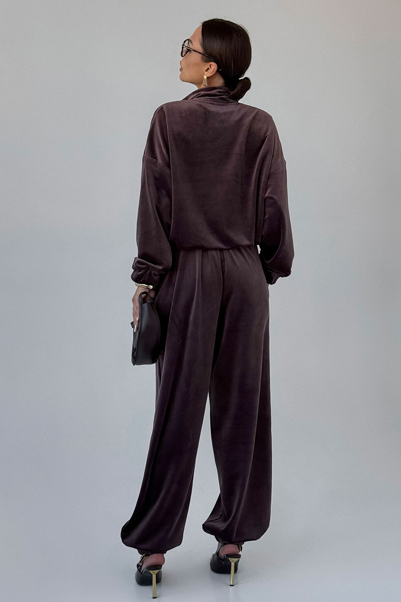 Костюм женский, выполнен из трикотажного велюра высокого качества. Костюм состоит из джемпера и брюк свободного силуэта.