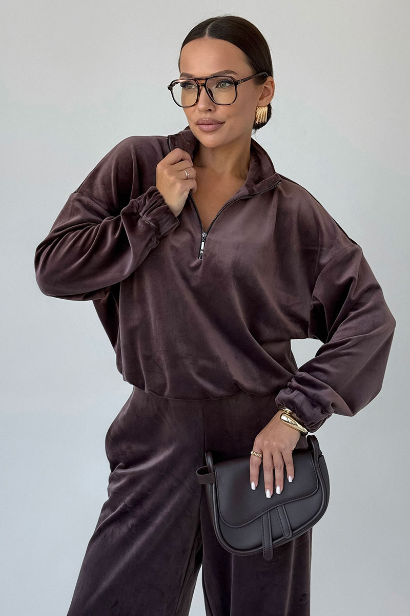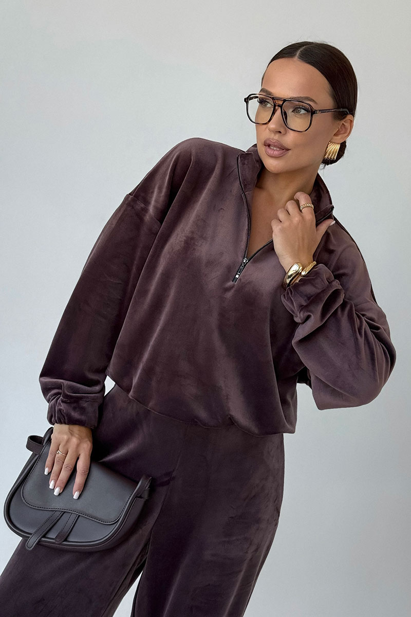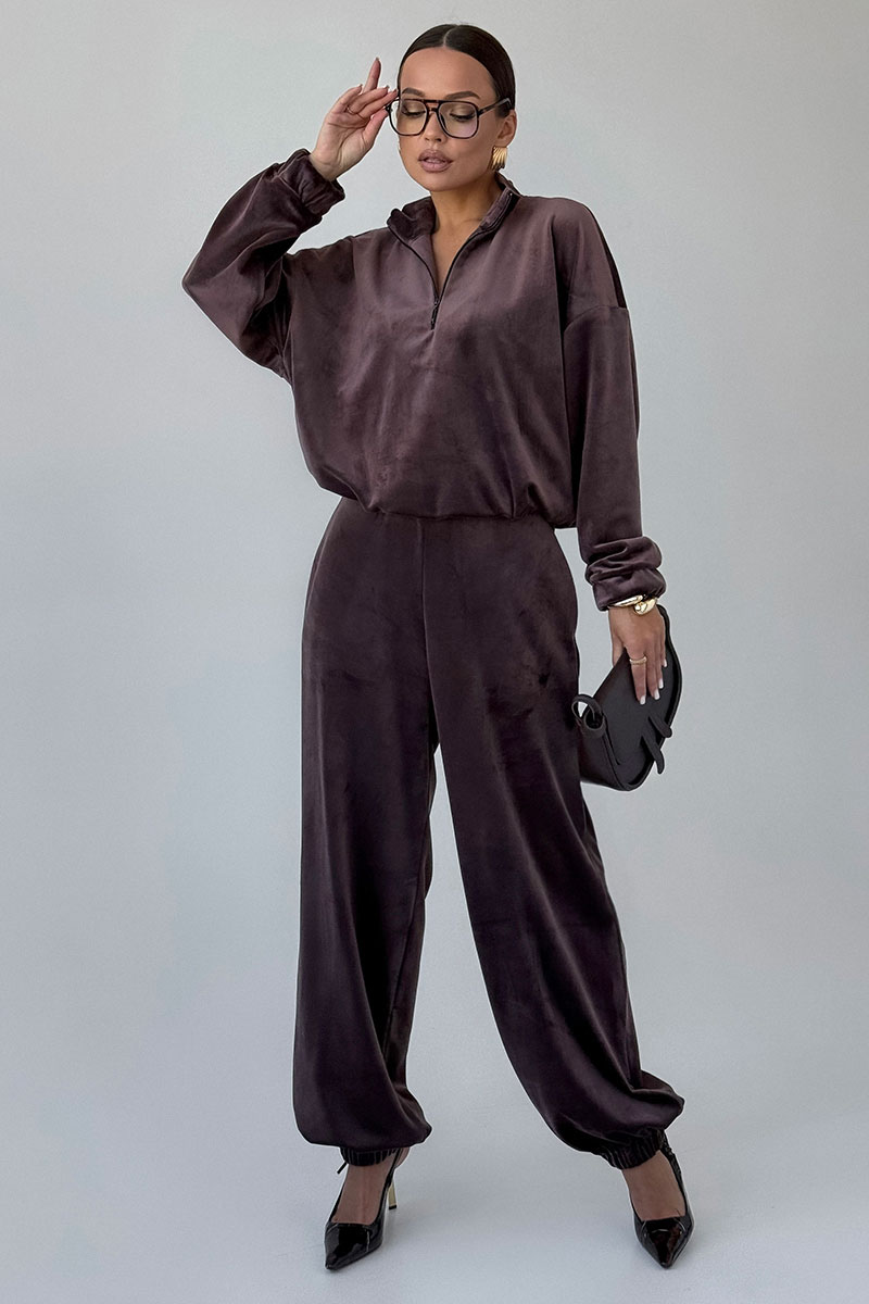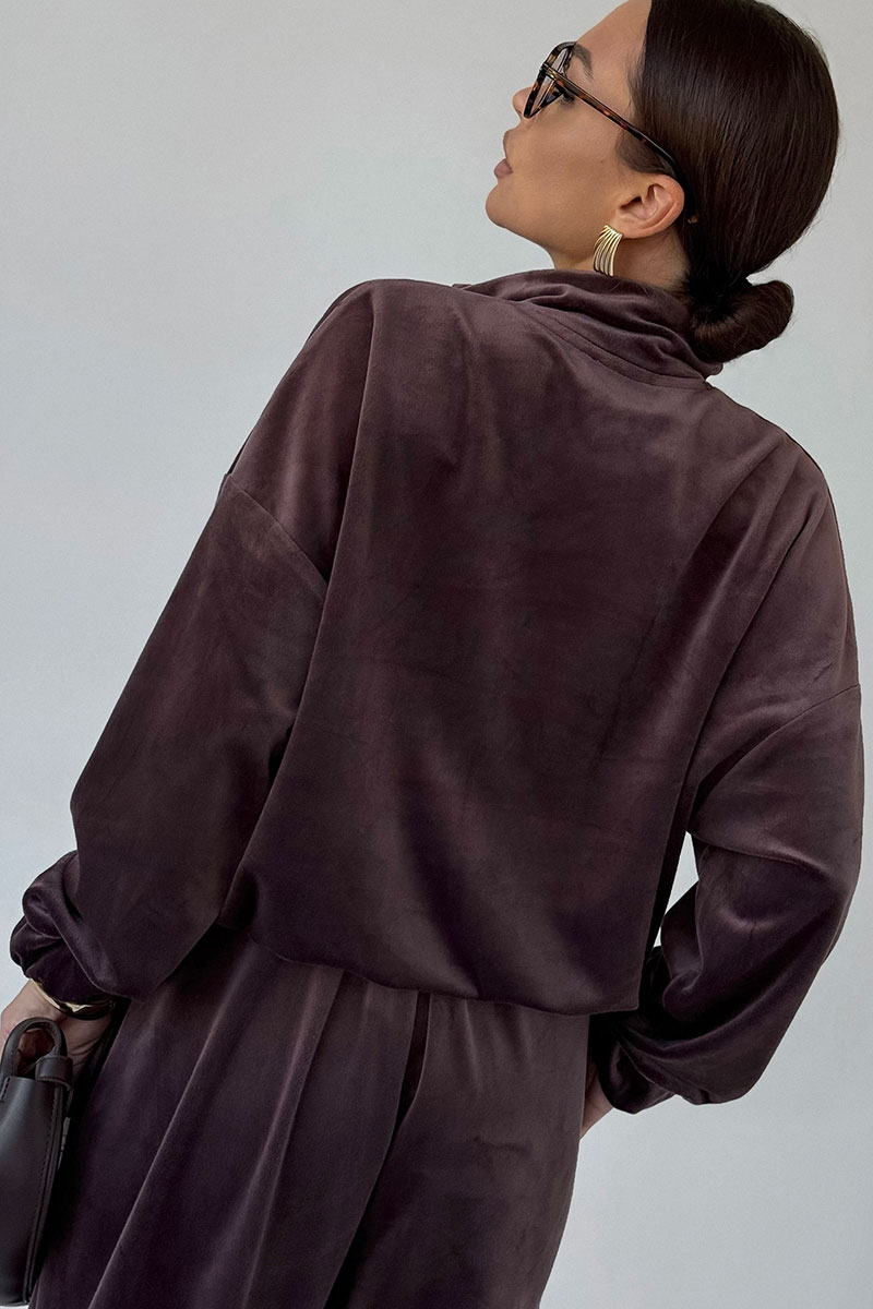 Костюм женский, выполнен из трикотажного велюра высокого качества. Костюм состоит из джемпера и брюк свободного силуэта.