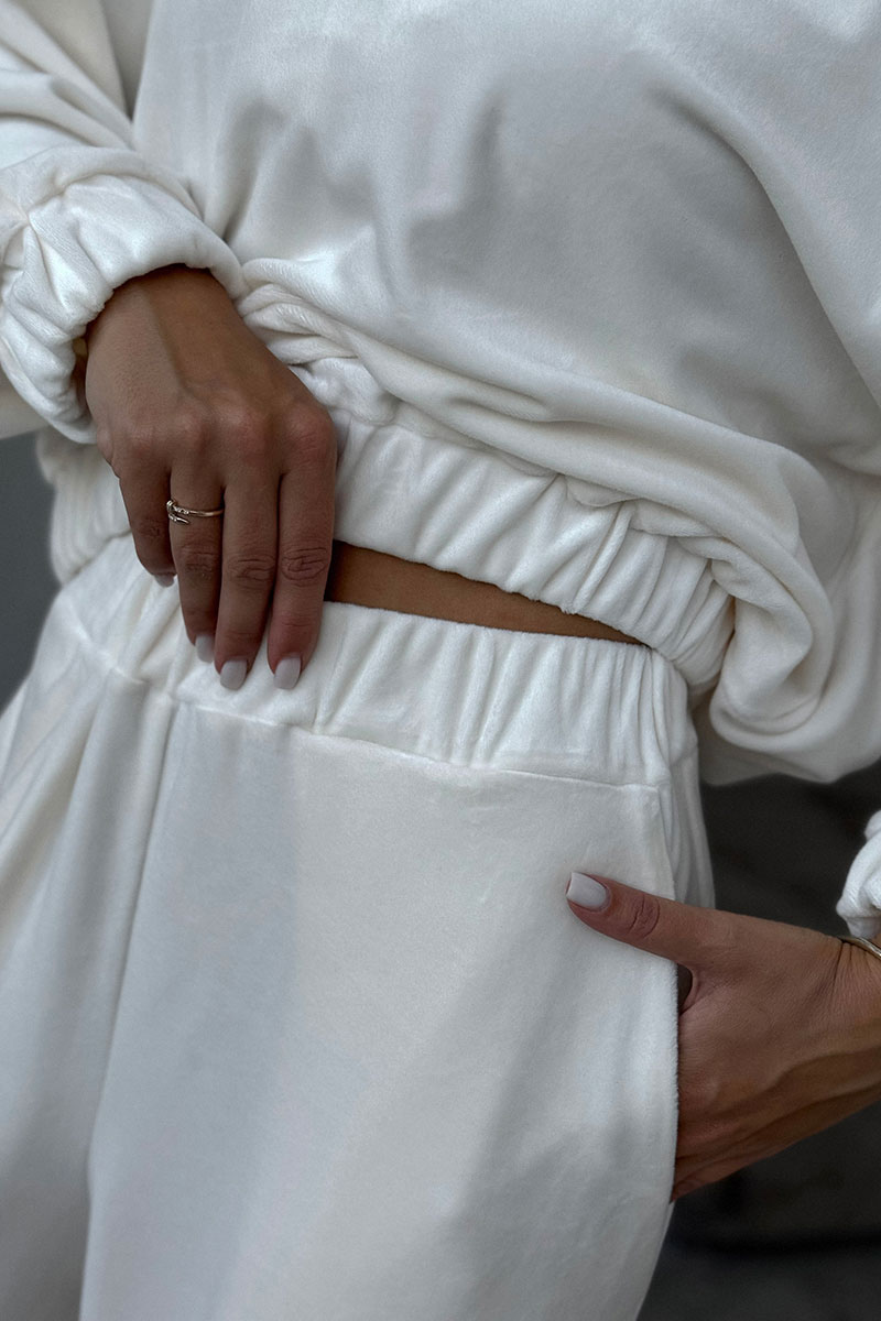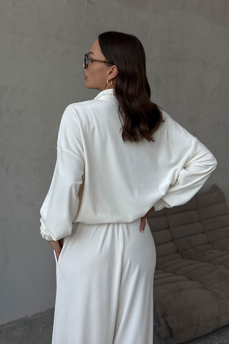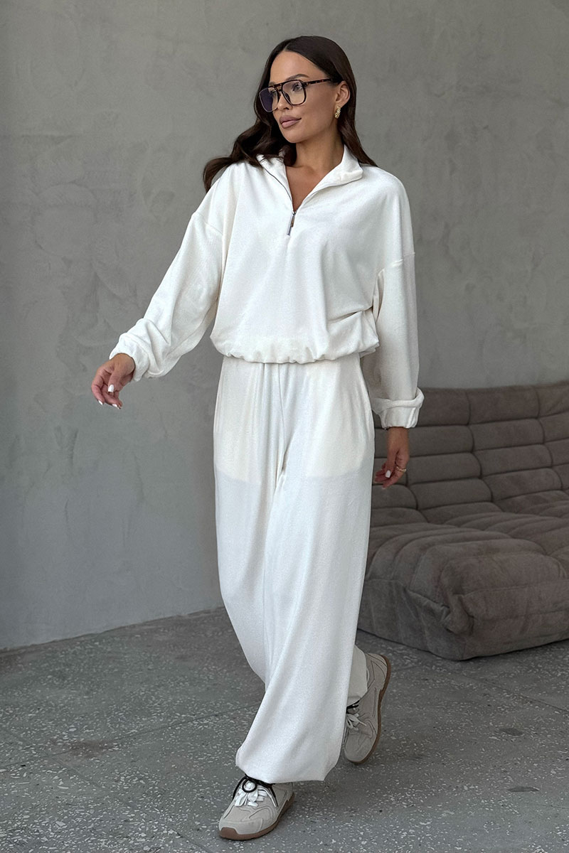 Костюм женский, выполнен из трикотажного велюра высокого качества. Костюм состоит из джемпера и брюк свободного силуэта.