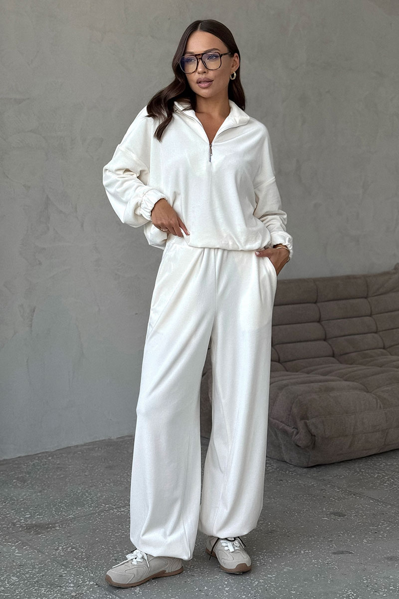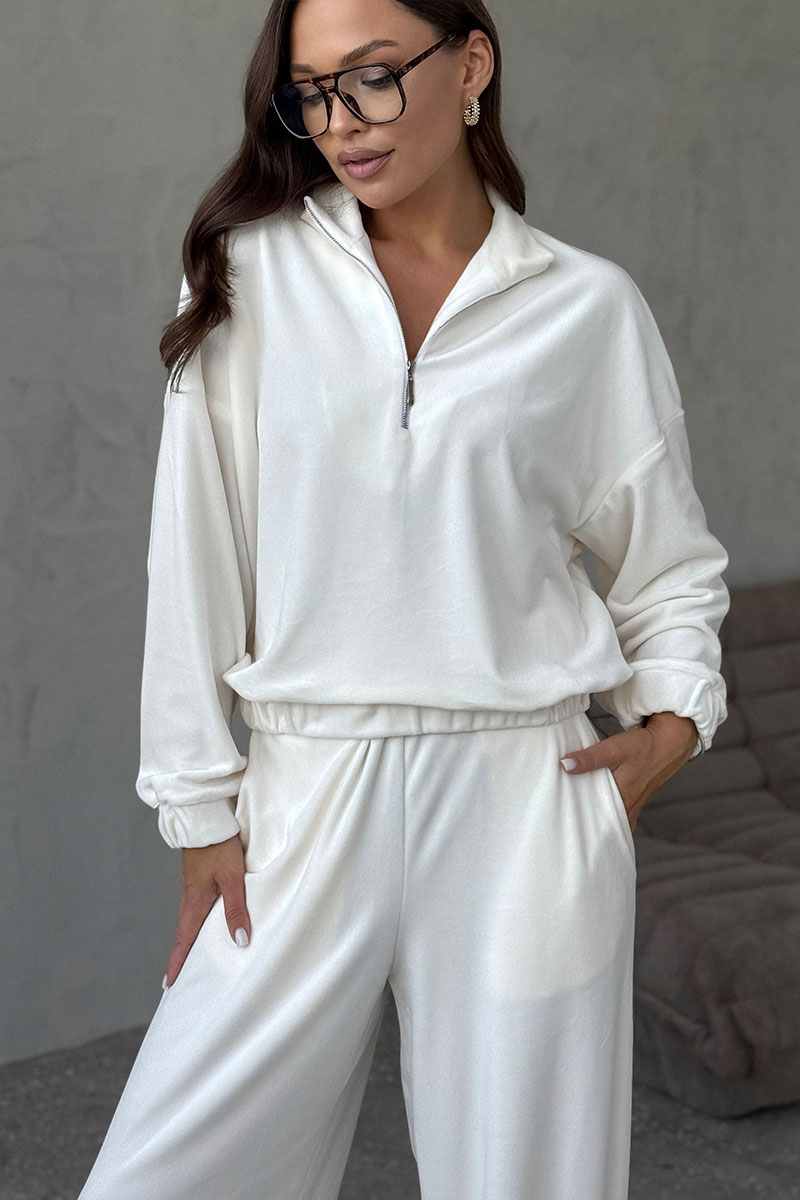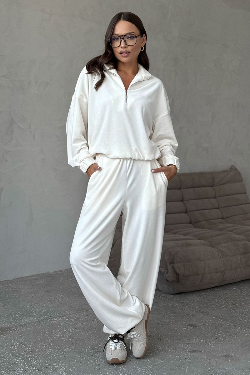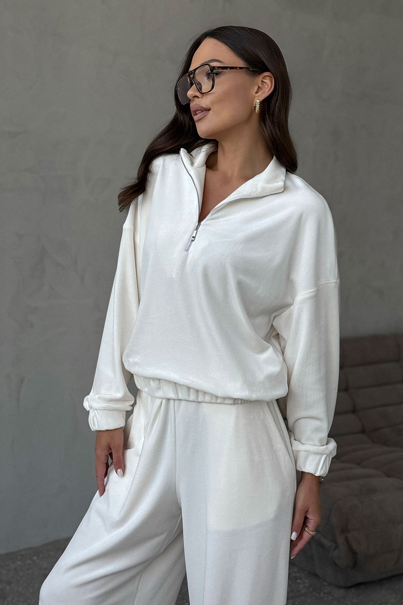 Костюм женский, выполнен из трикотажного велюра высокого качества. Костюм состоит из джемпера и брюк свободного силуэта.