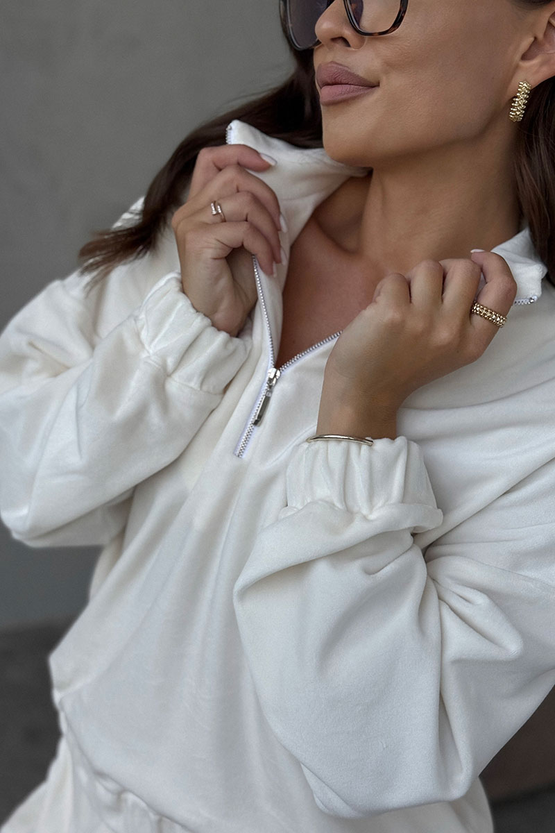 Джемпер свободного силуэта, с молнией по переду. Низ рукава и низ джемпера обработан эластичной лентой в закрытом шве.