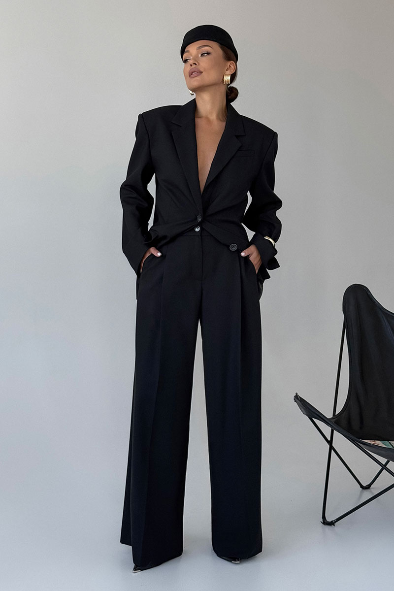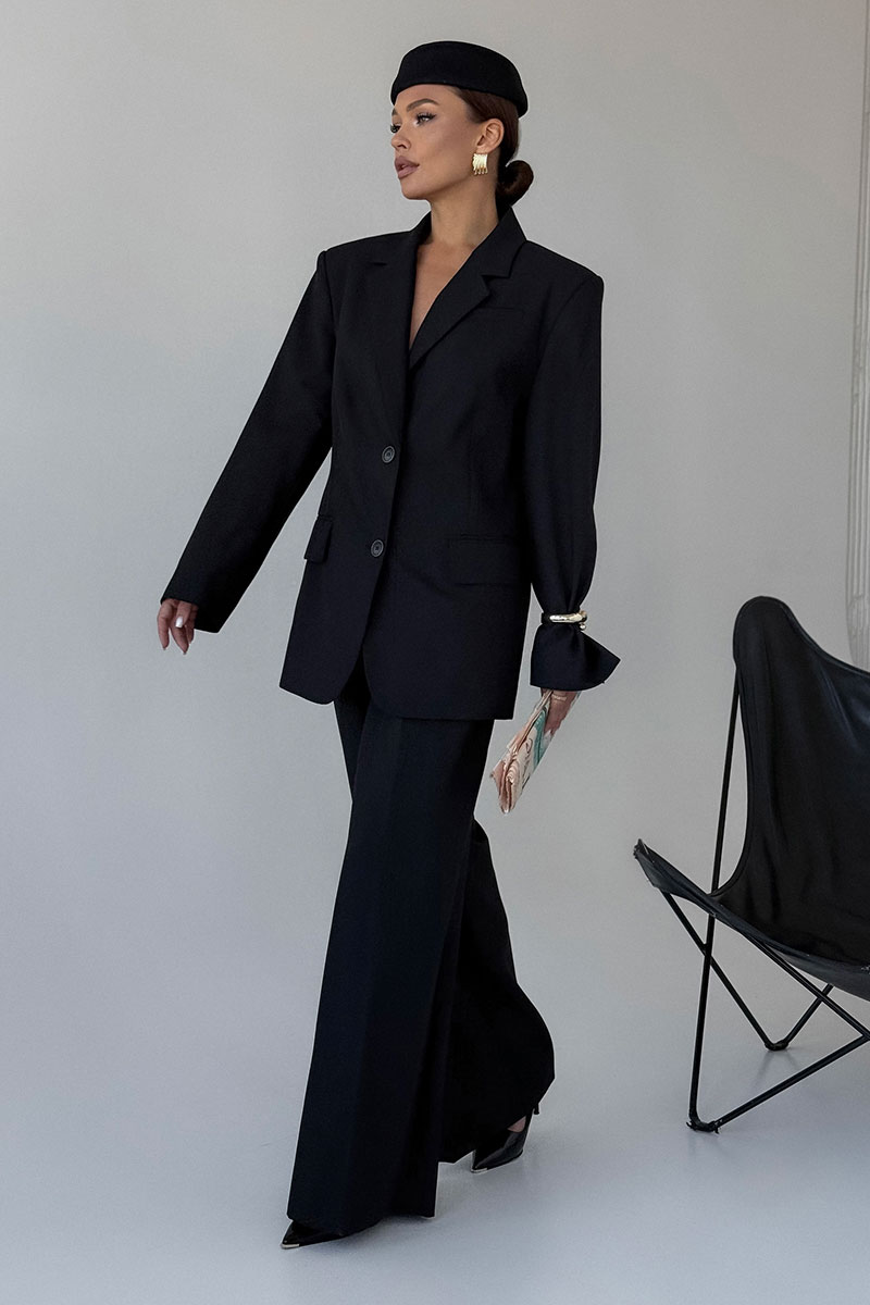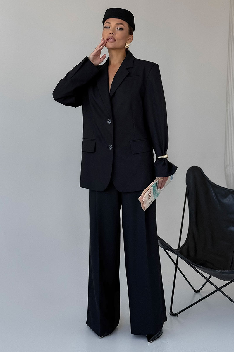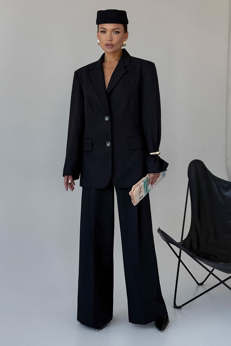 Костюм женский двухпредметный свободного силуэта, выполненный из костюмной ткани высокого качества.