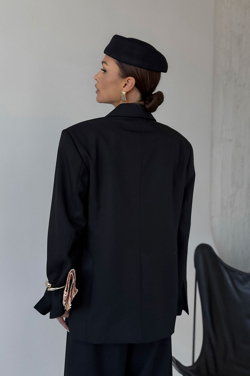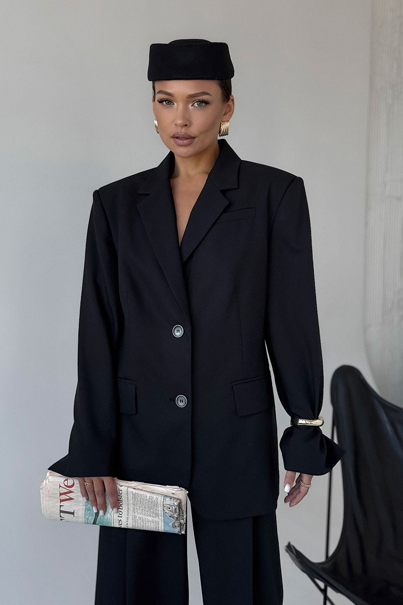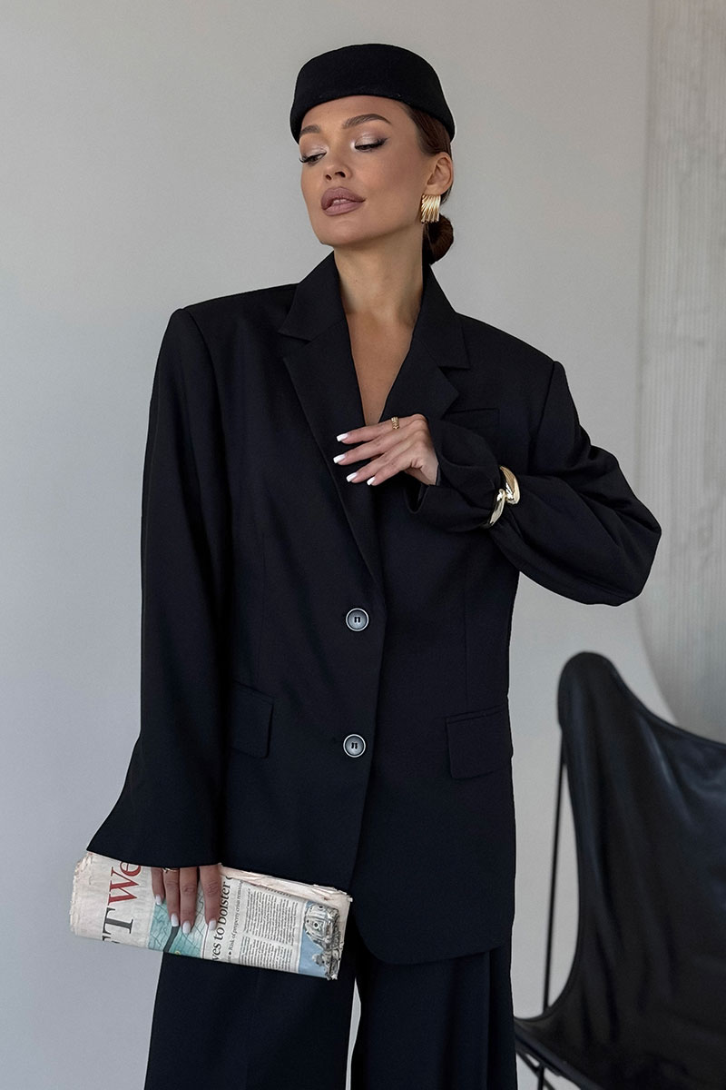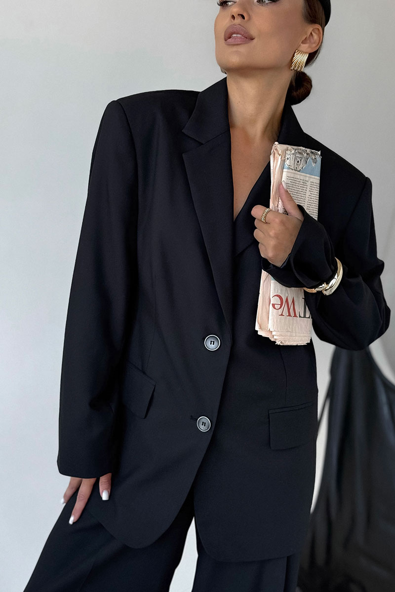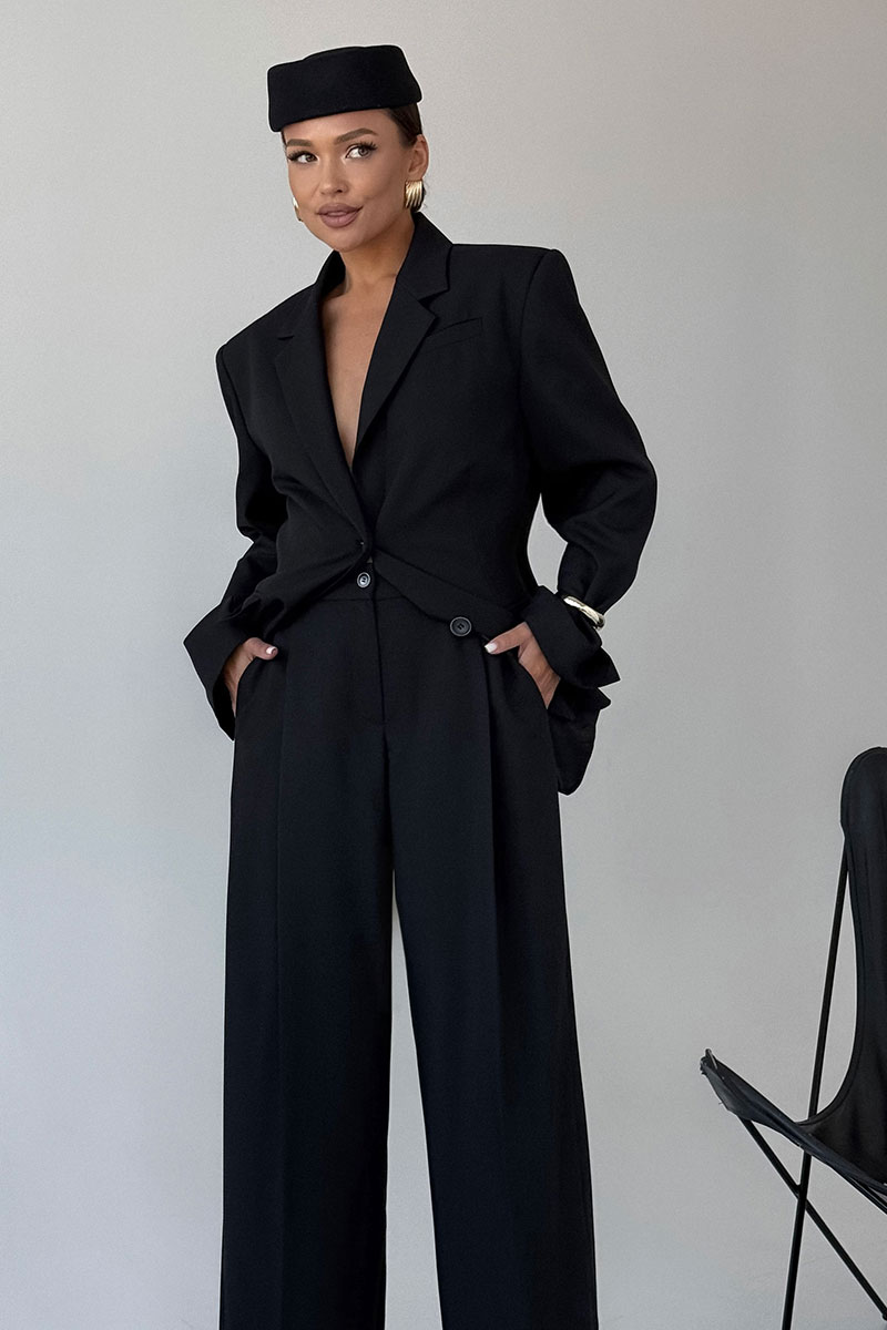 Костюм женский двухпредметный свободного силуэта, выполненный из костюмной ткани высокого качества.