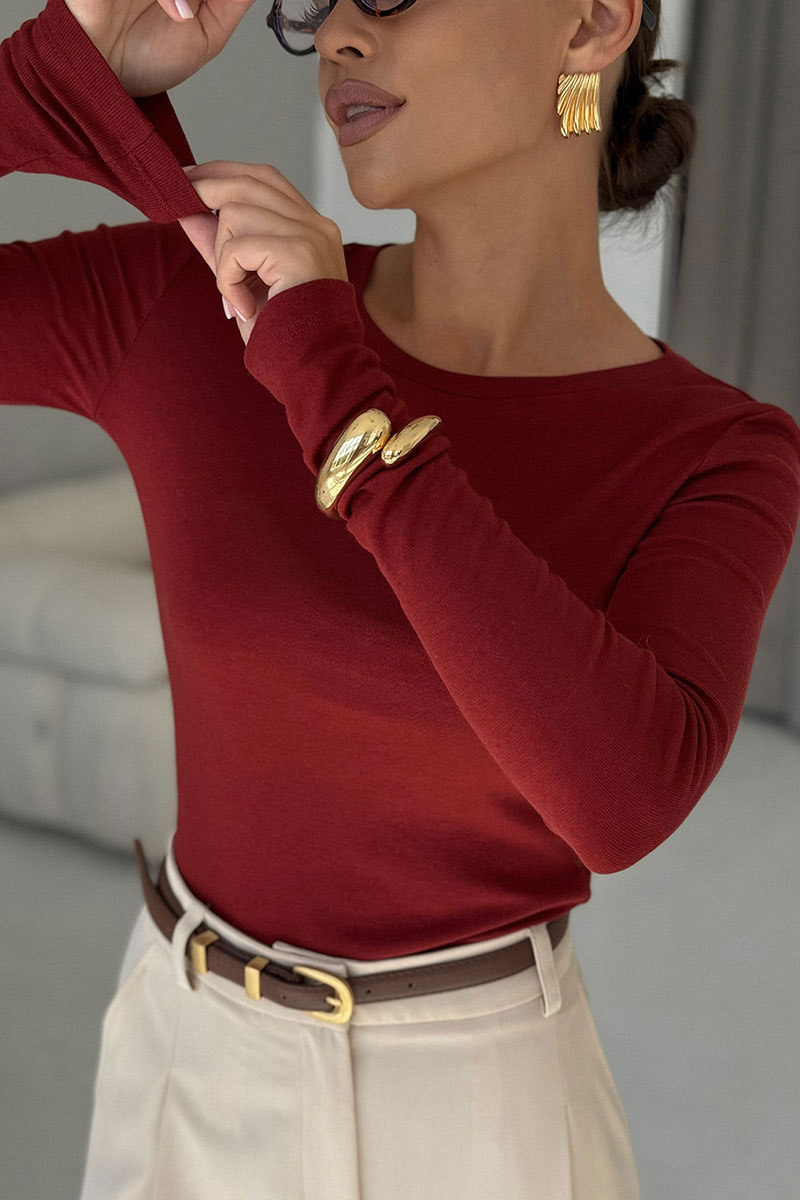Джемпер женский, приталенного силуэта. Выполнен из трикотажного полотна высокого качества. Рукав втачной, горловина круглой формы.