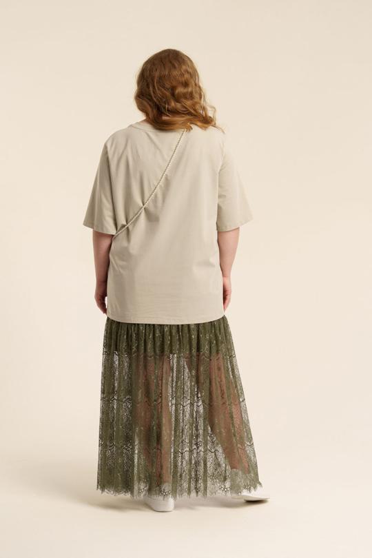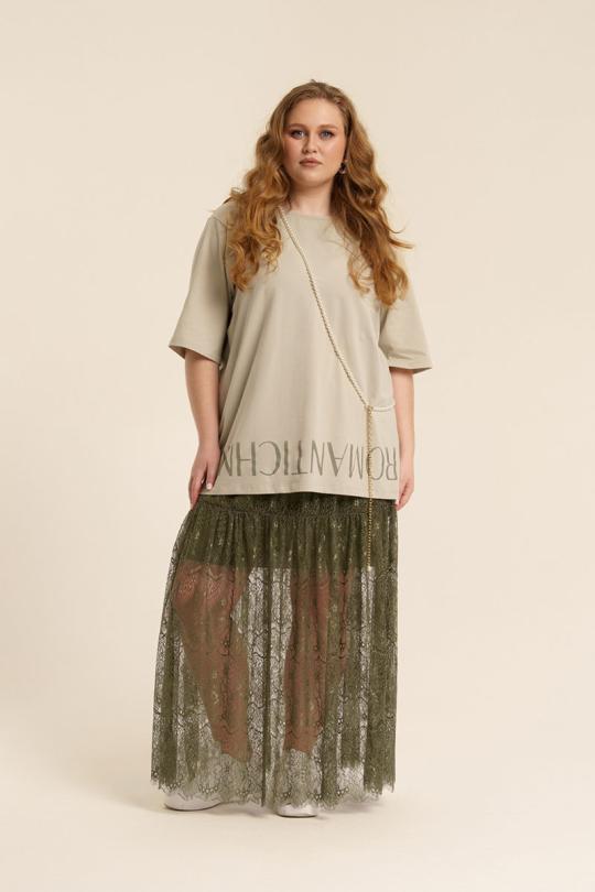 Юбка прозрачная из гипюра в стиле бохо на подкладке. Пояс- с эластичной тесьмой без застежки. Ниже линии бедер выполнен подрез и волан с небольшой сборкой.