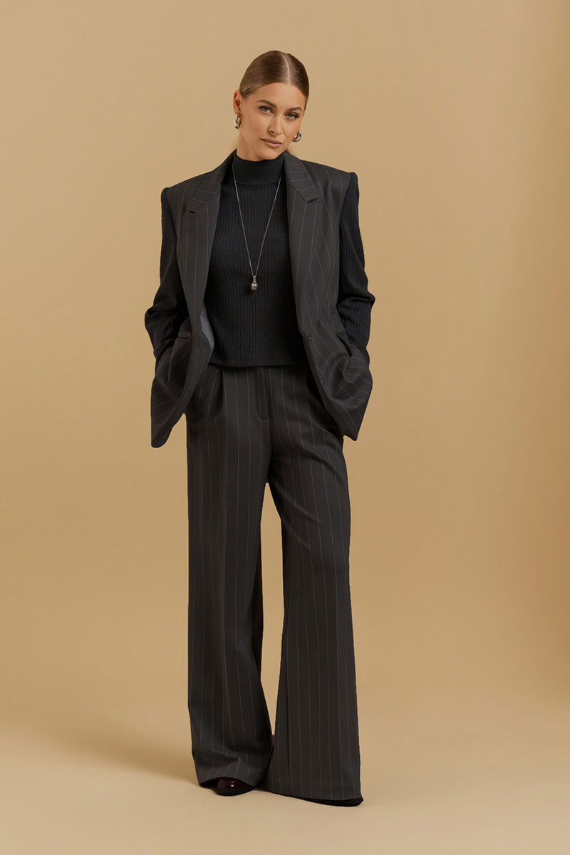 Брюки прямого силуэта со стрелками. Пояс - отрезной с эластичной тесьмой. в боковых швах имеются карманы с отрезными бочками. В боковых швах - карманы. Есть шлевки для ремня.