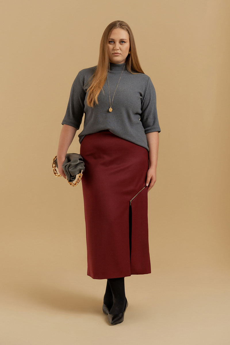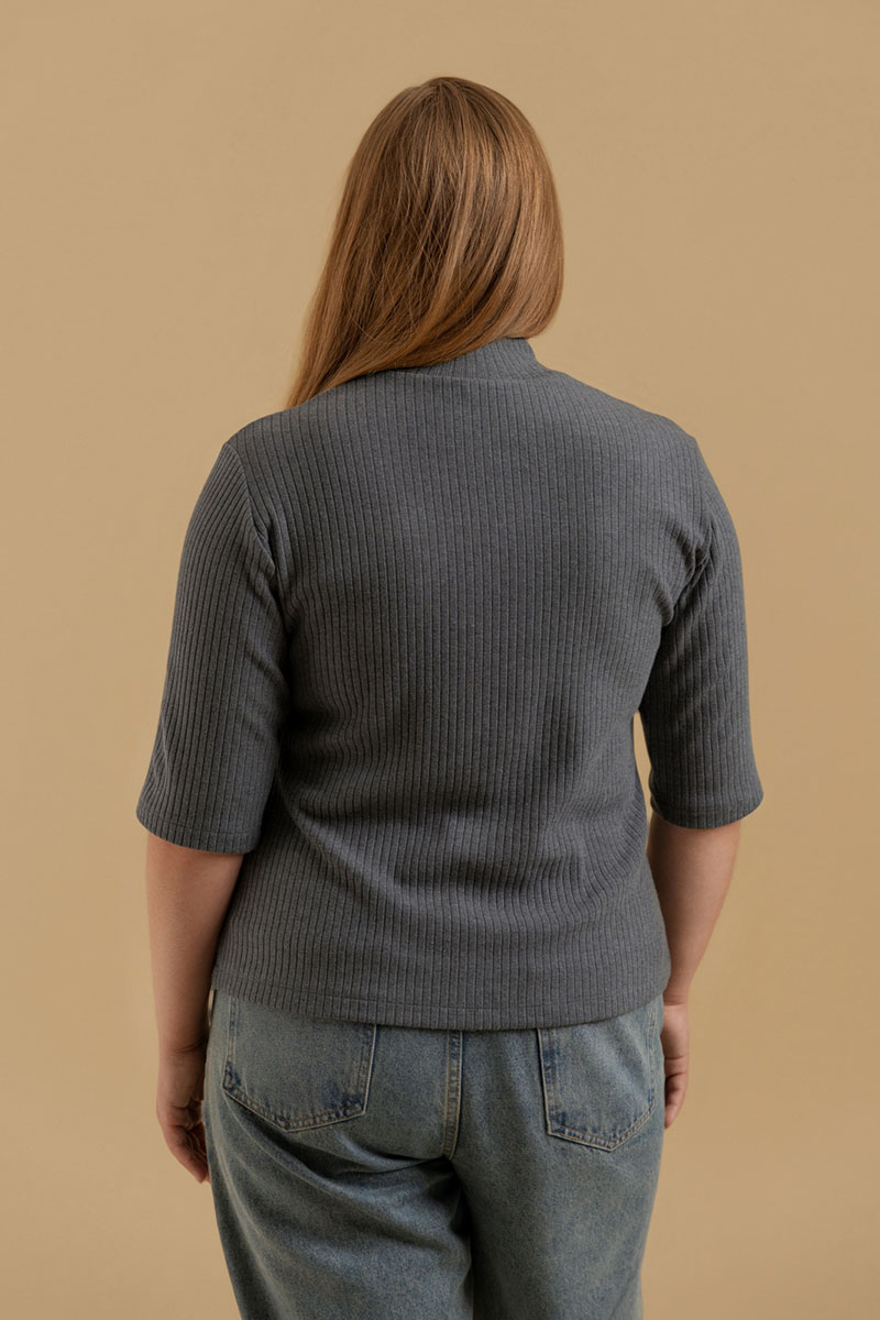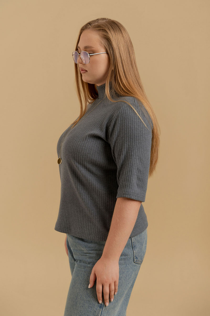 Джемпер женский полуприлегающего силуэта из трикотажного полотна. Вырез горловины оформлен воротником - стойкой. Рукава - втачные с естественной линией плеча.