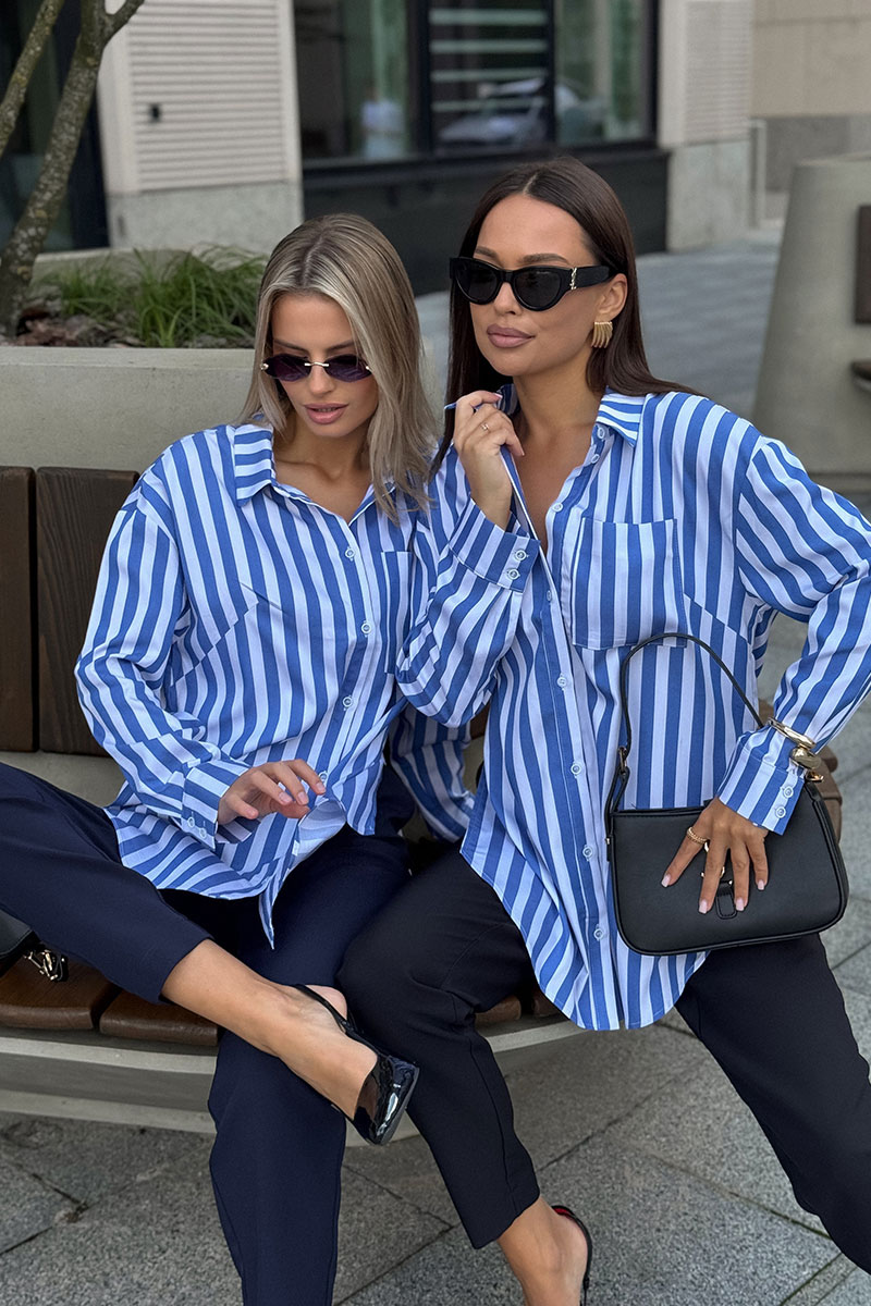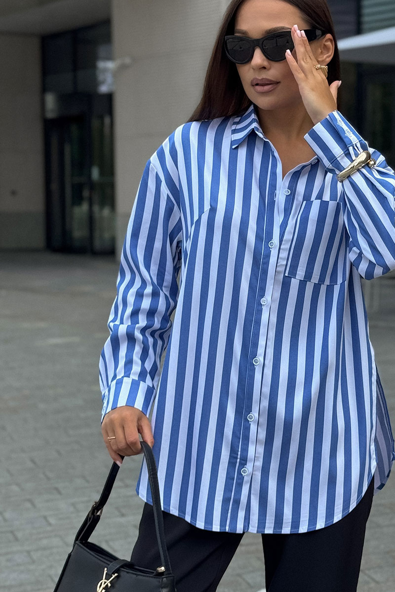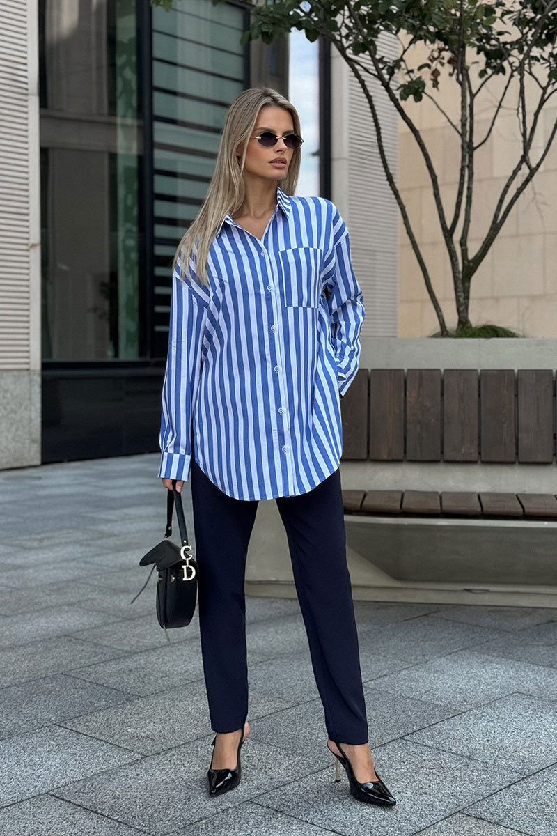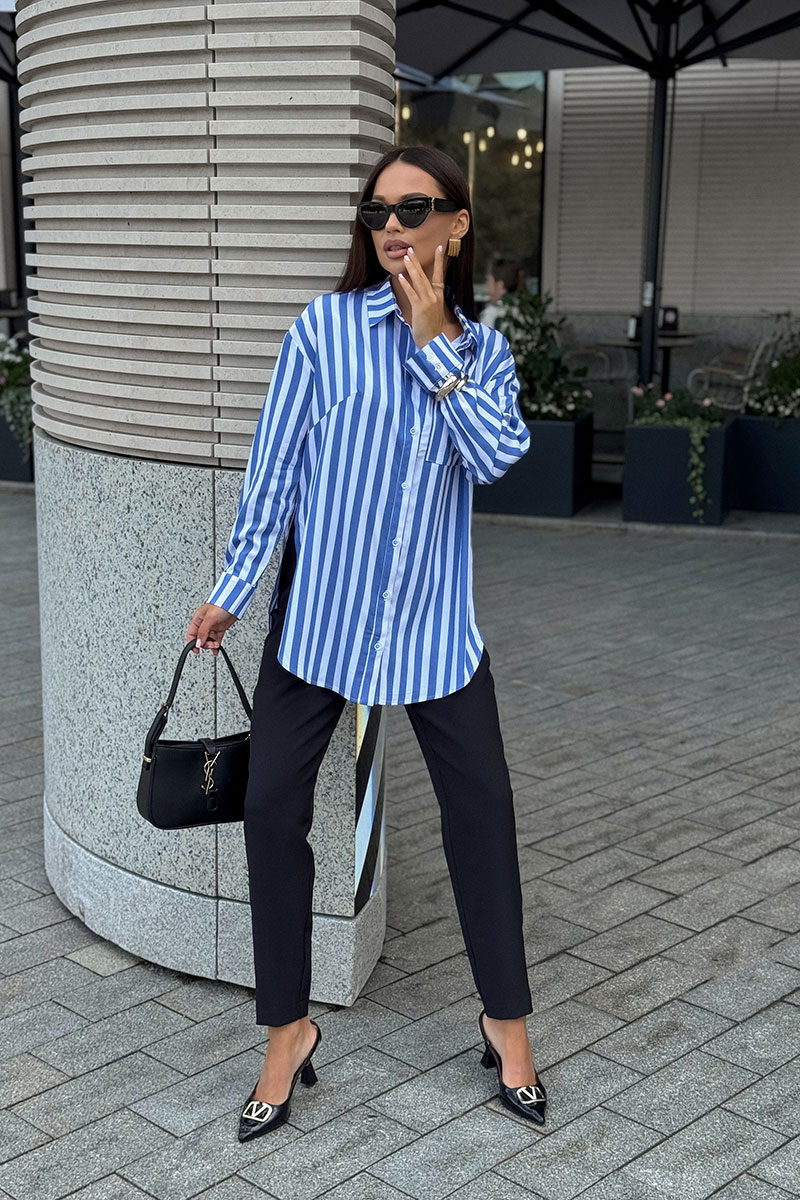 Блузка с центральной застежкой и планками на 7 прорезных петель и пуговиц.