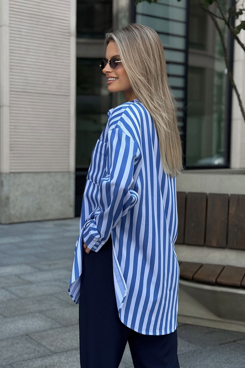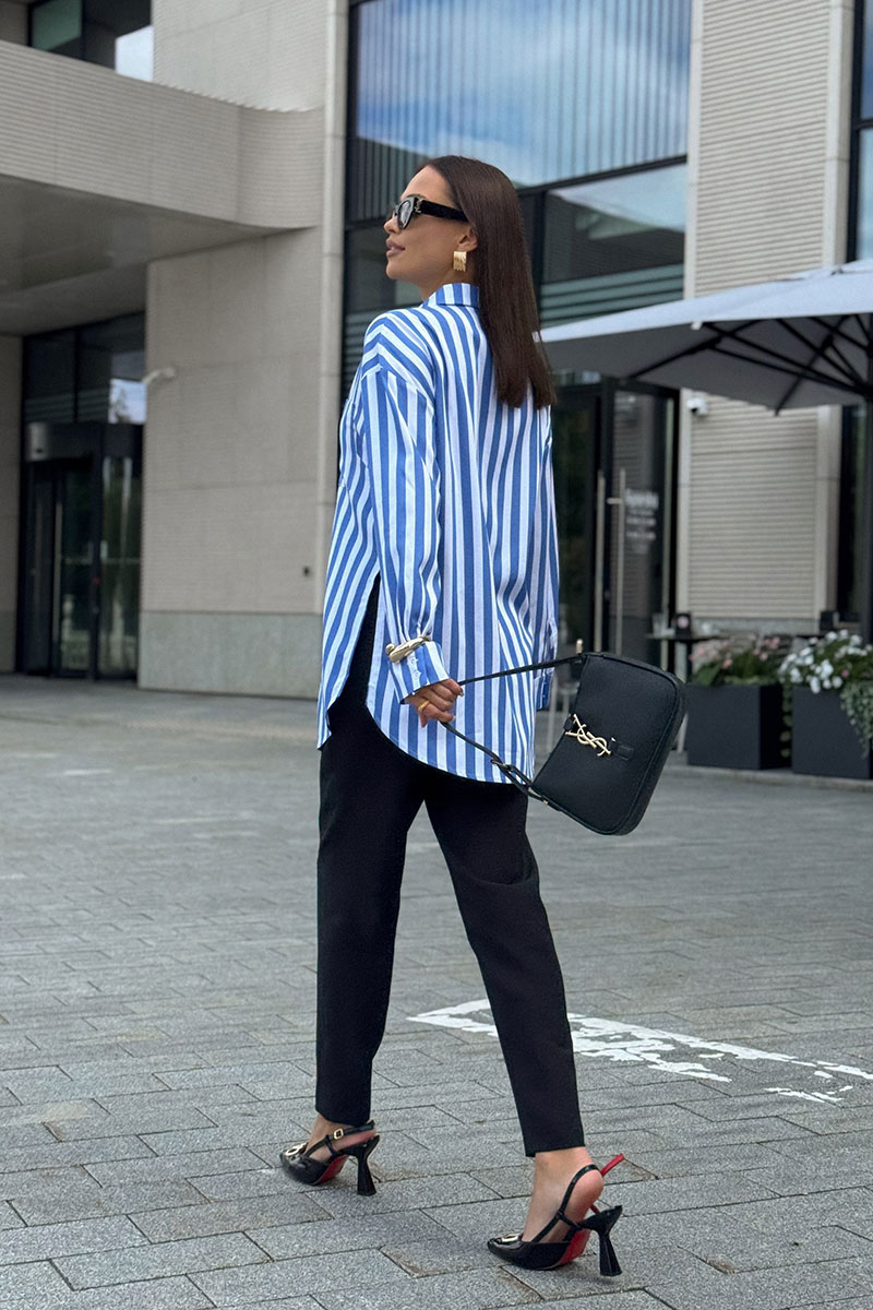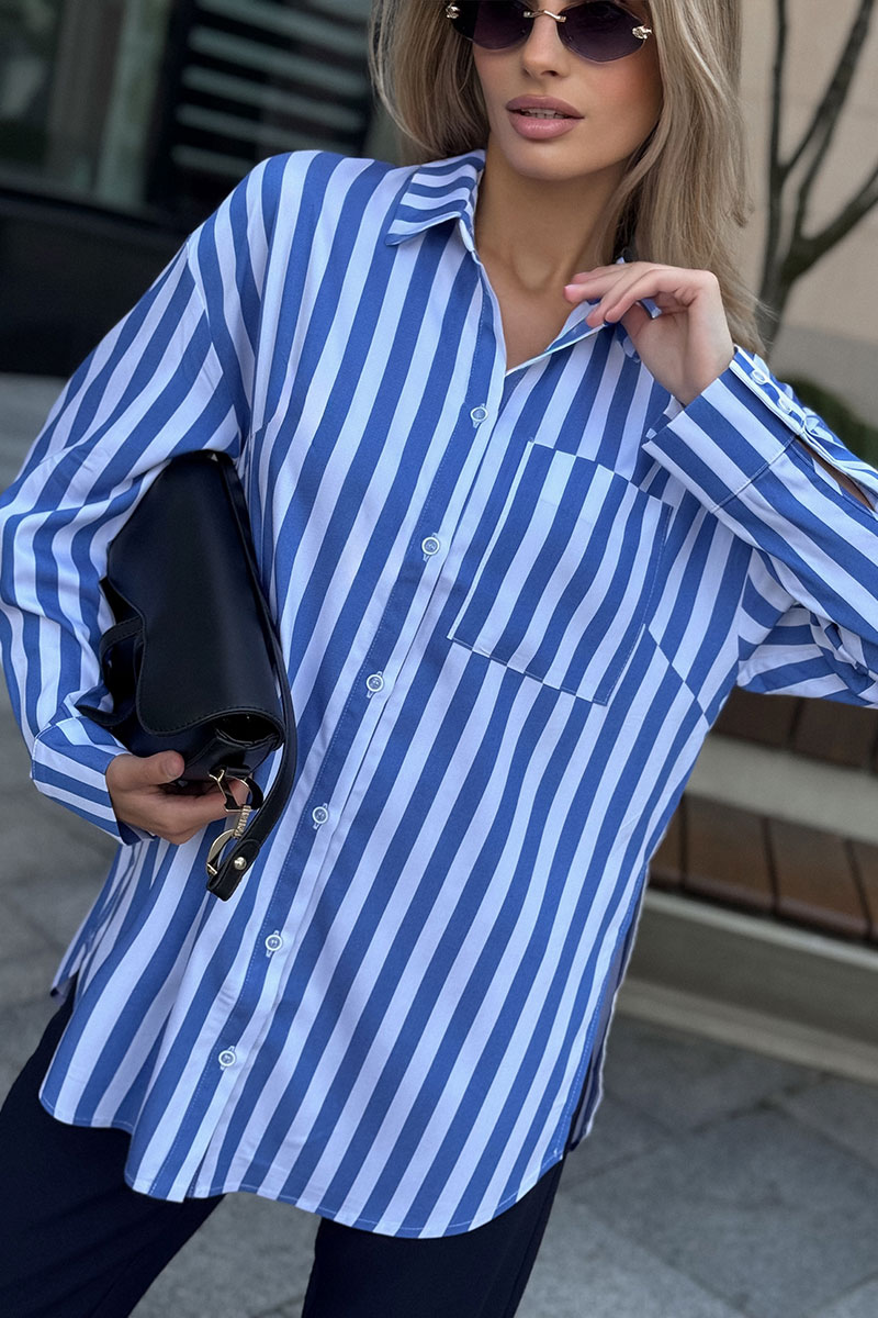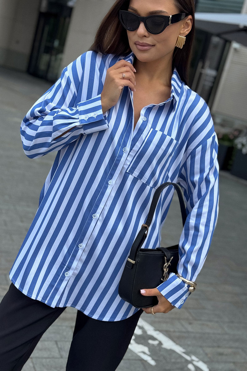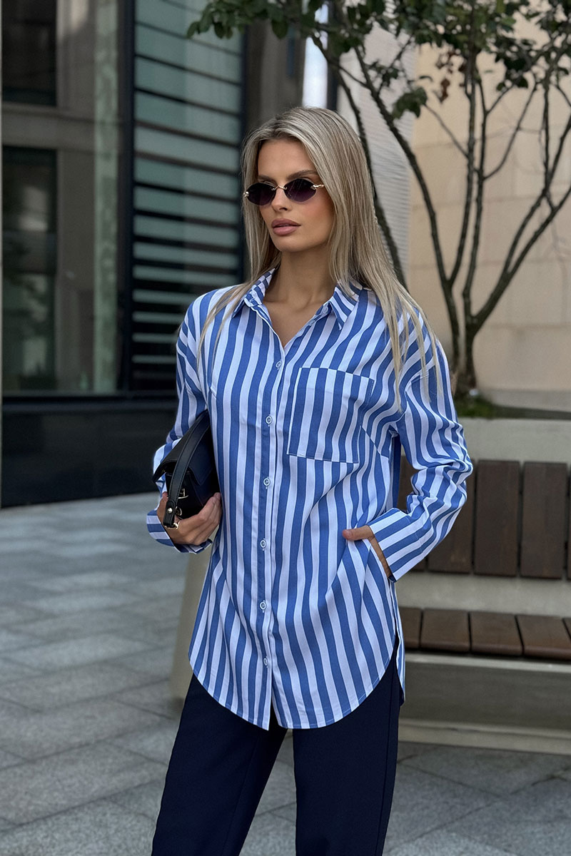Блузка с центральной застежкой и планками на 7 прорезных петель и пуговиц.