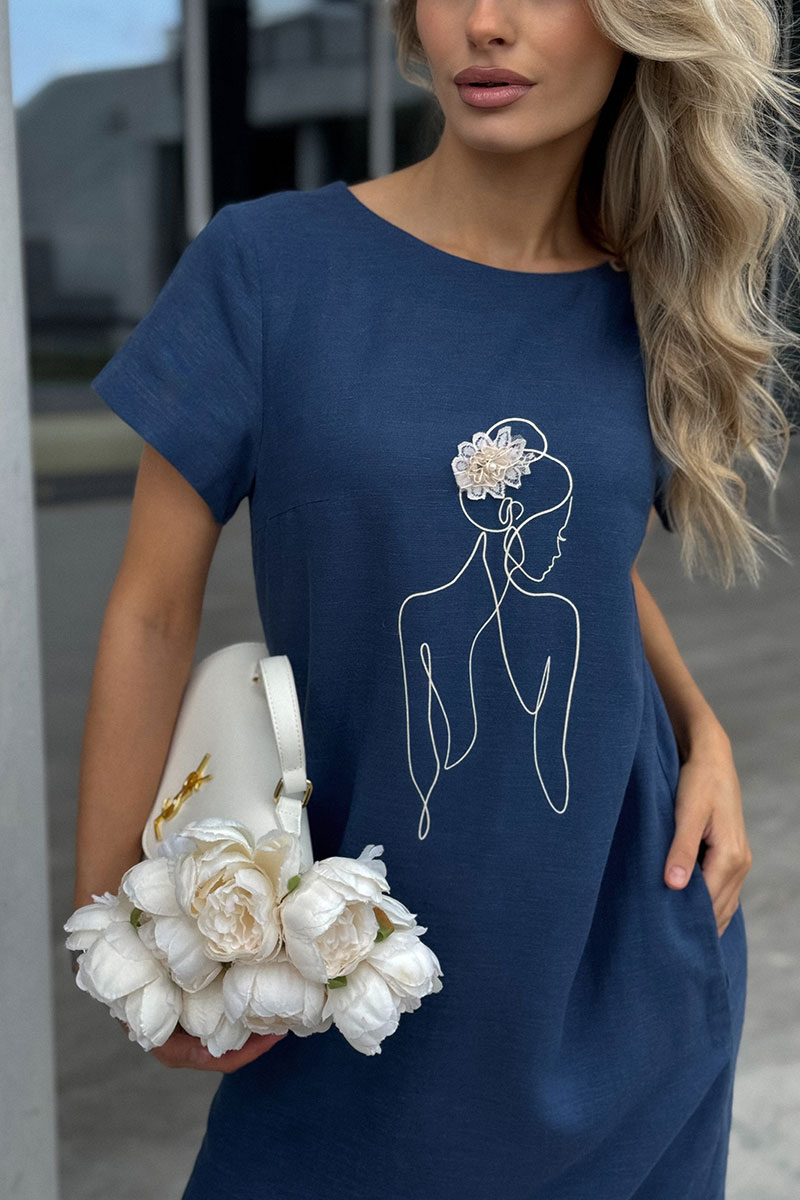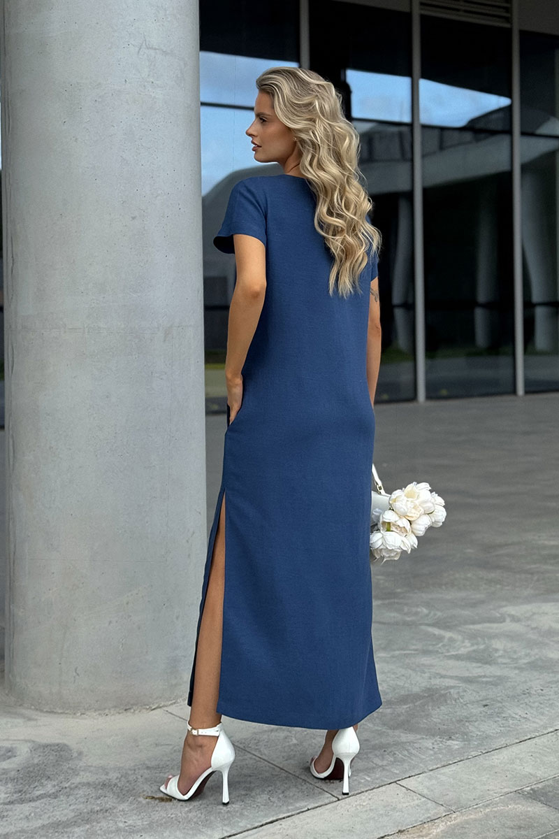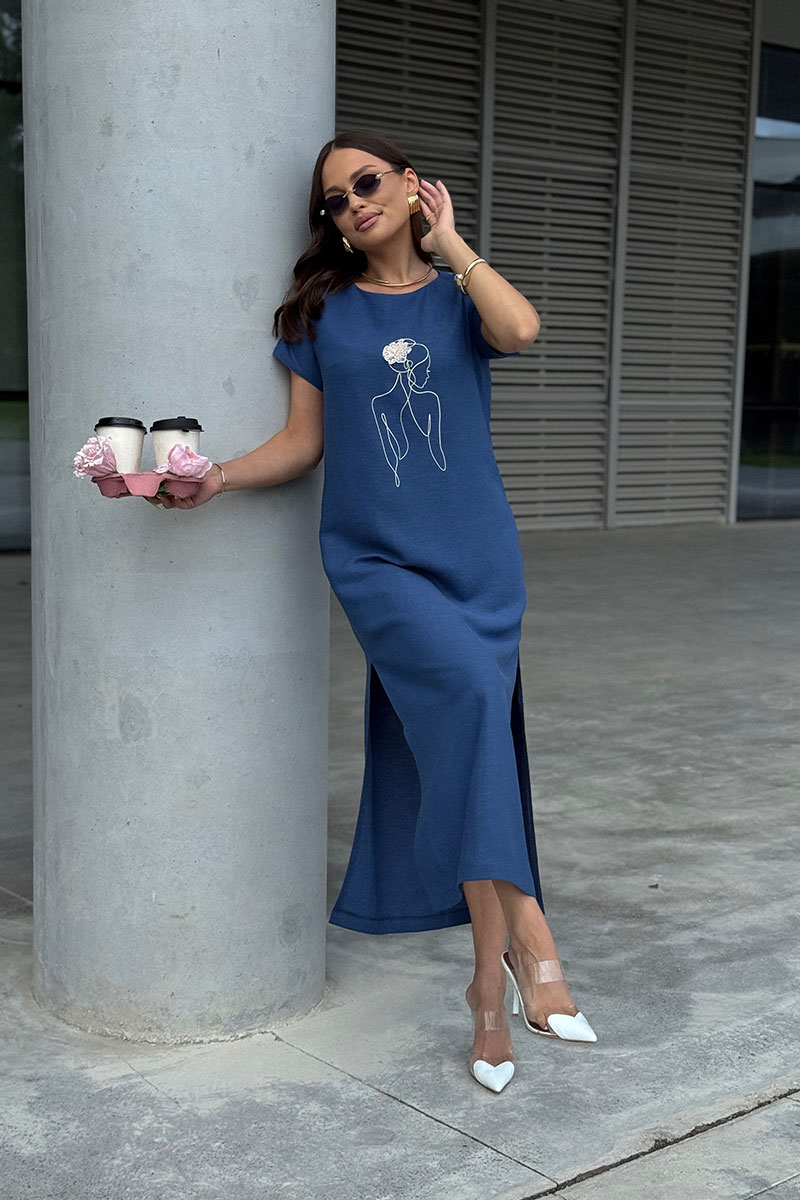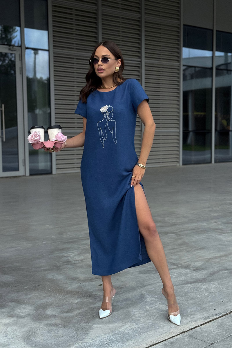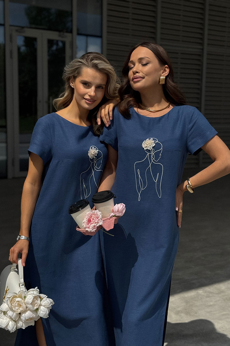 Платье женское прямого силуэта длинное. Перед - с нагрудными вытачками и печатью. Спинка без конструктивных элементов.