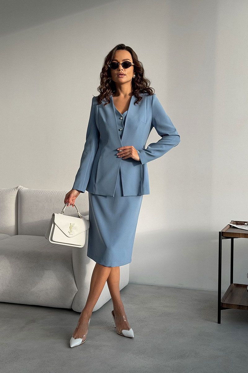 Костюм женский двухпредметный, состоящий из платья и жакета.