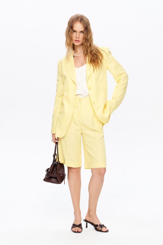 Сарафан женский на съёмных, регулируемых бретелях, приталенного силуэта из костюмно-плательной ткани, распашной, двубортный с застёжкой на петли и пуговицы спереди, длиной миди. Перед с талиевыми и нагрудными вытачками, порезными карманами в рамку-имитацией. В боковых швах оформлены функциональные карманы. Спинка с двумя парами талиевых вытачек, в которые вставлен хлястик, регулируемый пряжкой. Сарафан на подкладке.