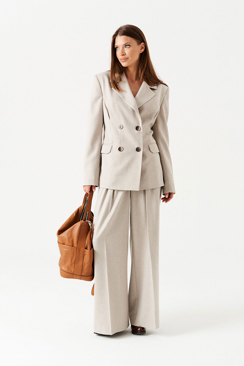 Комплект женский 2-предметный из костюмной ткани, состоящий из жакета и брюк.