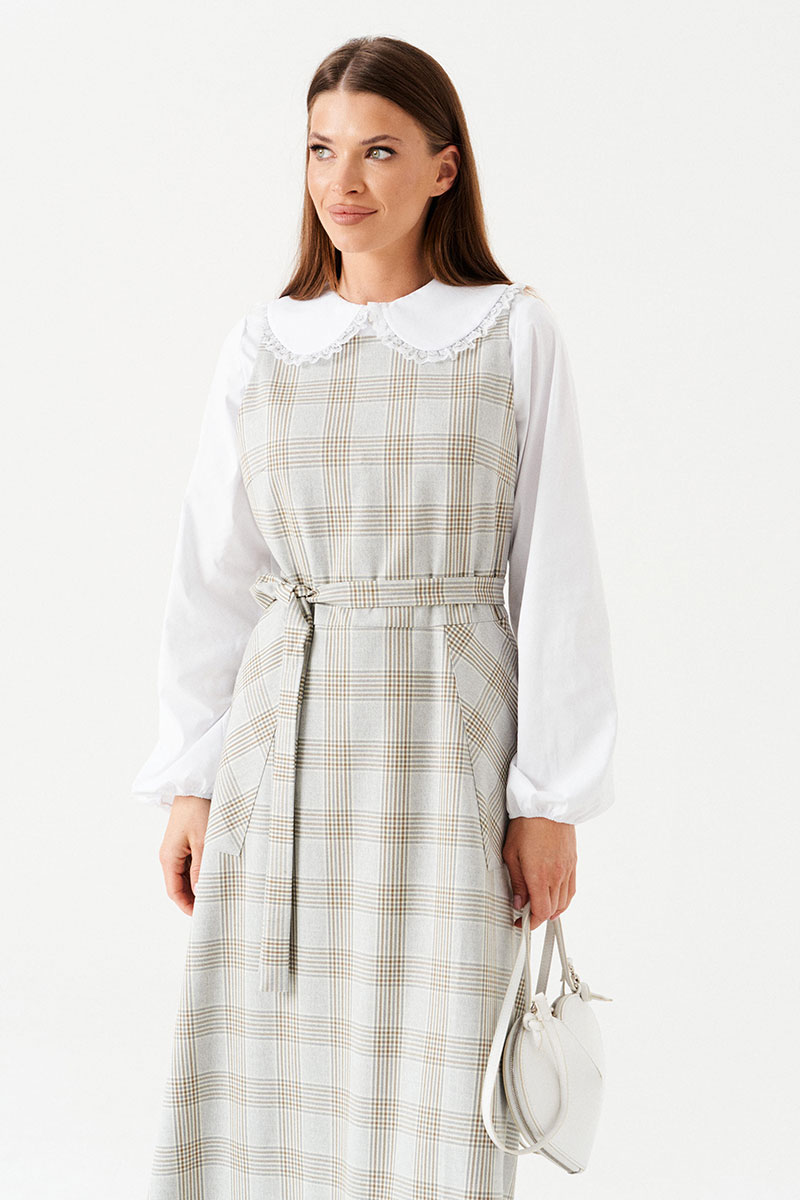 - Состав: блуза: хлопок 71%; ПЭ 27%; эластан 2%; сарафан: ПЭ 64%; вискоза 34%; спандекс 2%