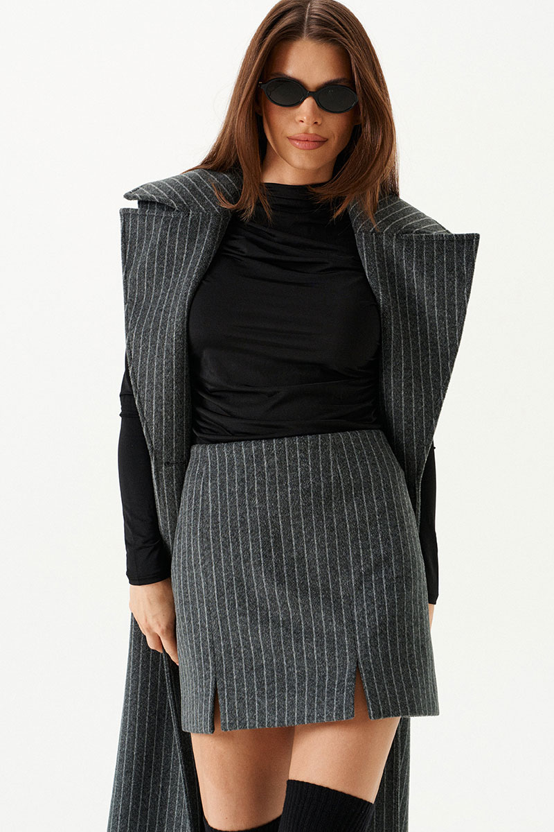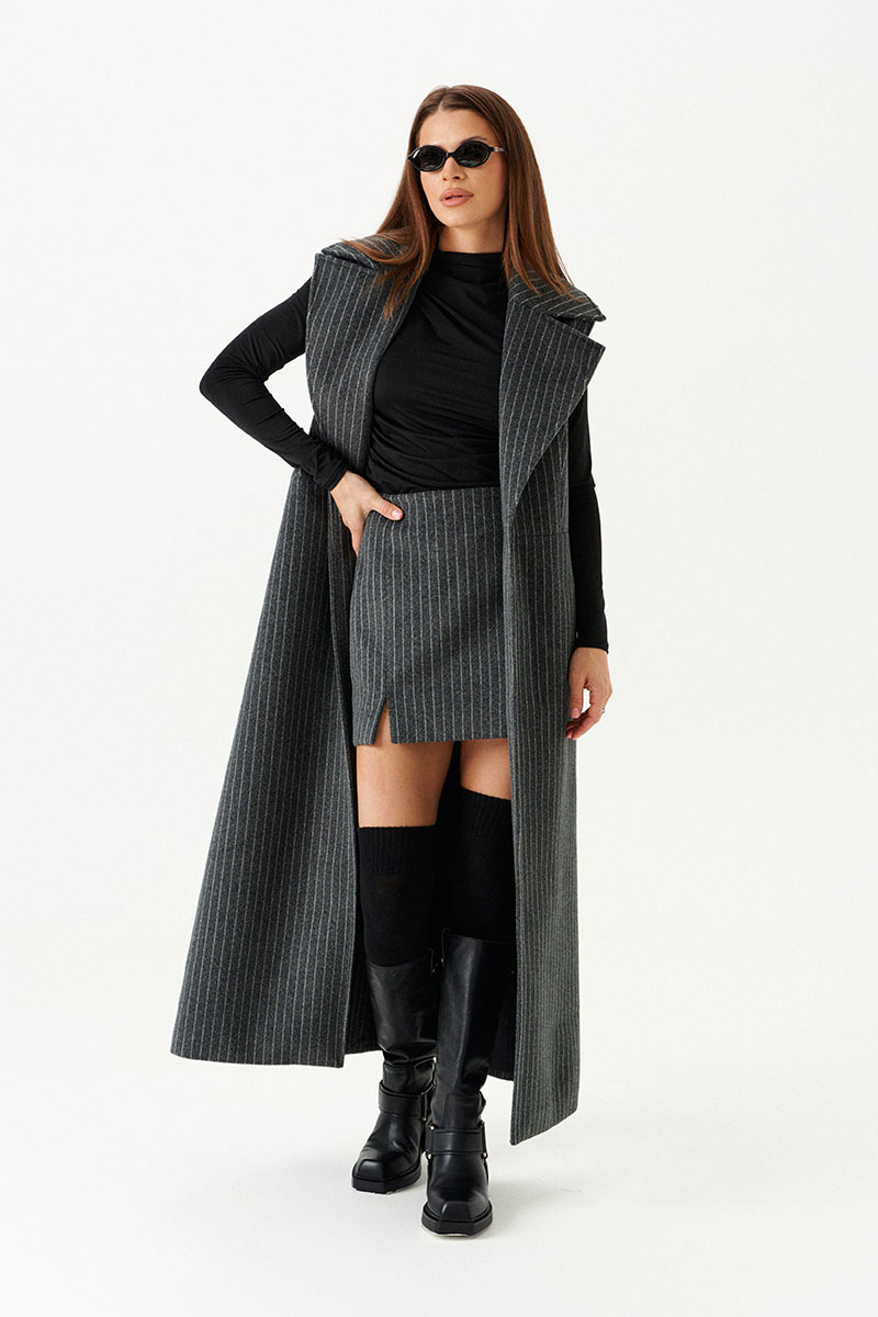 Комплект женский 2-предметный из трикотажного полотна, состоящий из жилета и юбки.
